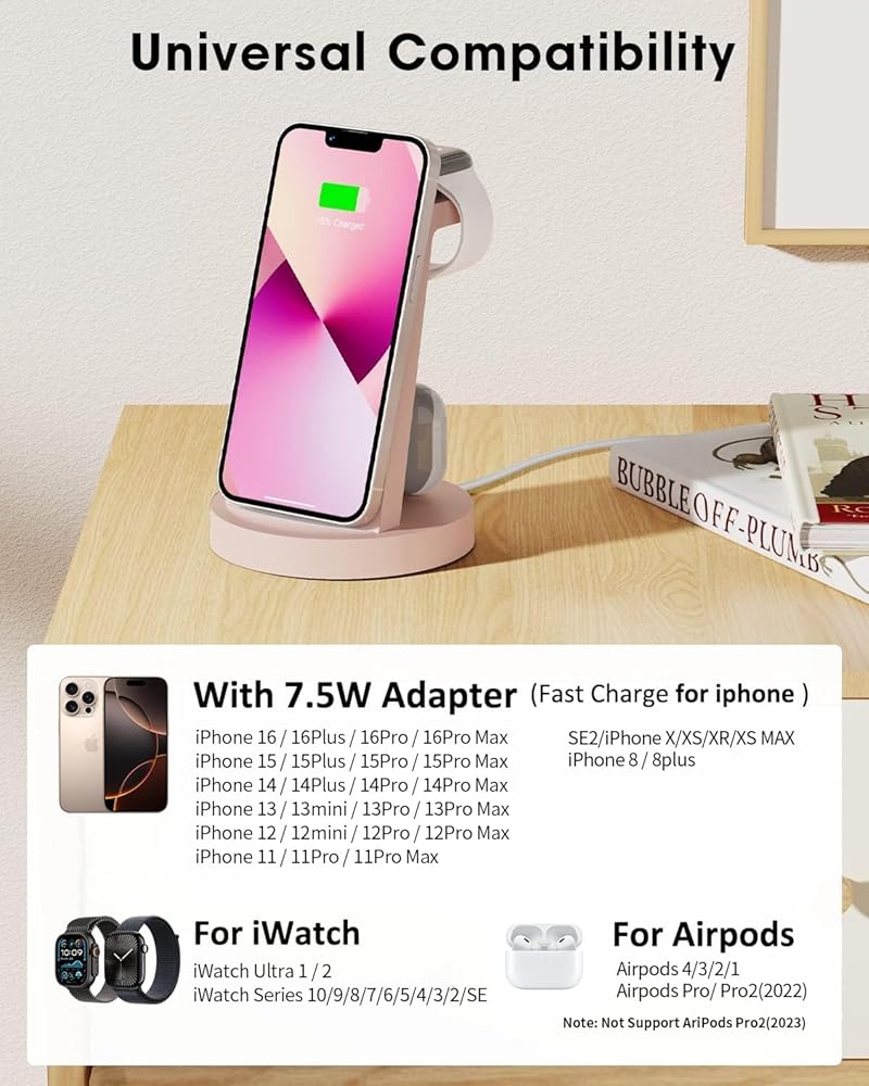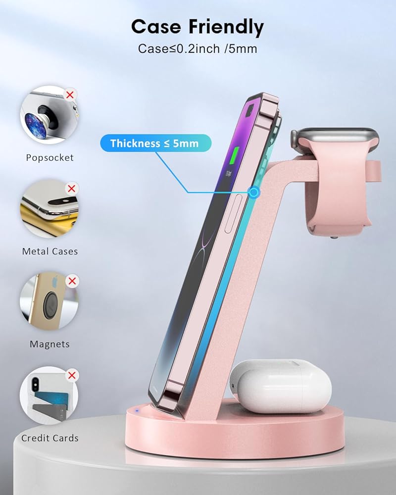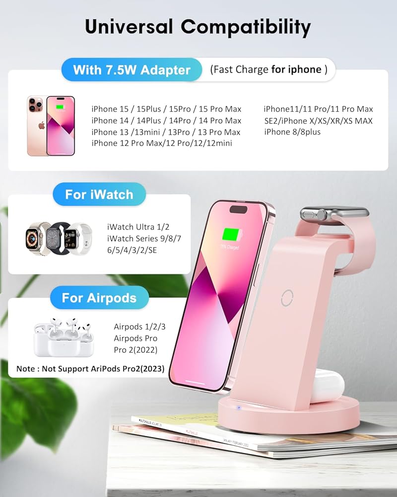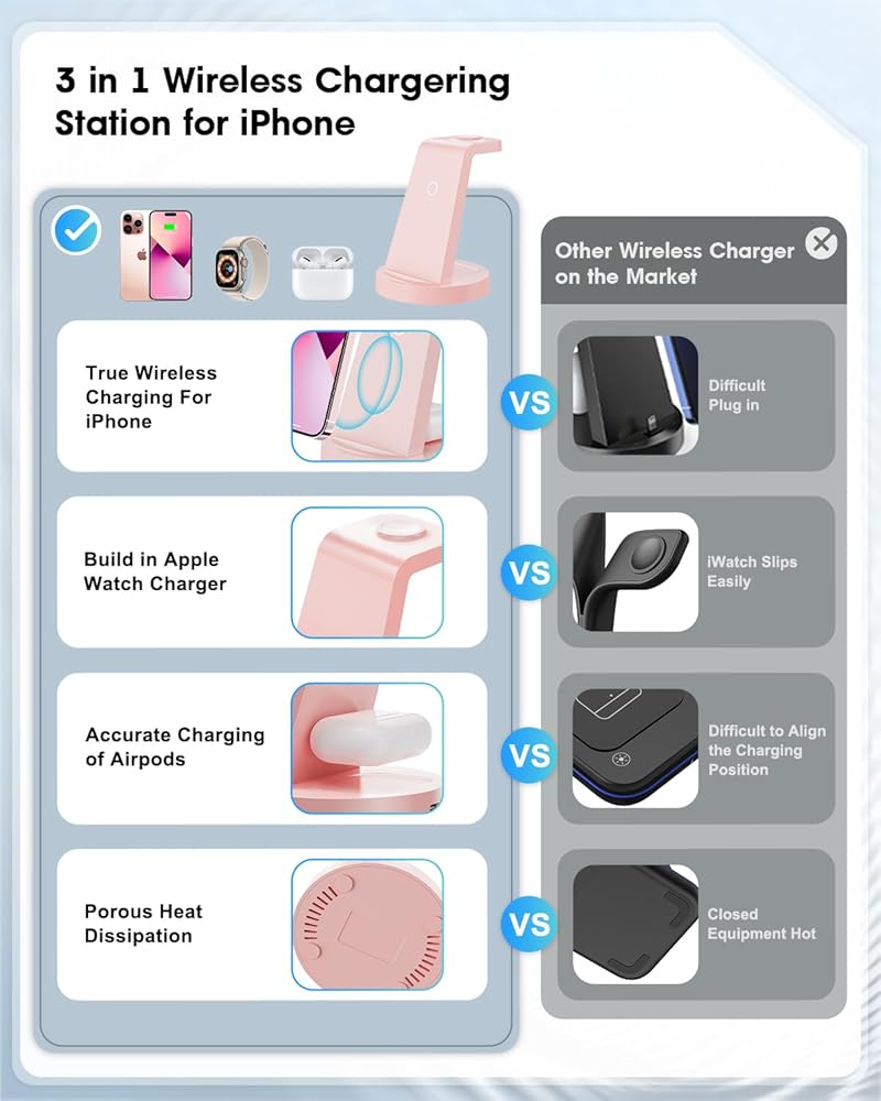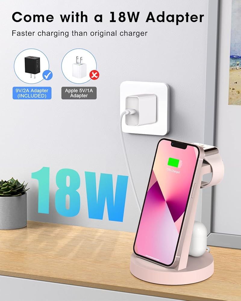 【ترقية محطة شحن لاسلكية 3 في 1】محطة شحن لاسلكية لمنتجات Apple، توفر تكاليفك. محطة شحن سريعة 3 في 1 تساوي محطة شحن واحدة لـ iWatch، وحامل شحن هاتف واحد، وقاعدة شحن واحدة لأجهزة AirPods. توافق واسع لتغطية جميع أجهزة IOS، متوافق مع iPhone 14/14 Pro/14 Pro Max/13/13 Pro/13 Pro Max/13 mini/12/12 Pro/12 Pro Max/12 mini/11/11 Pro/11 برو ماكس/XS/XR/XS MAX/X/8/8Plus & iWatch SE/6/5/4/3/2 & AirPods Pro/3/2/1. جهاز لا بد منه لمحبي التفاح.