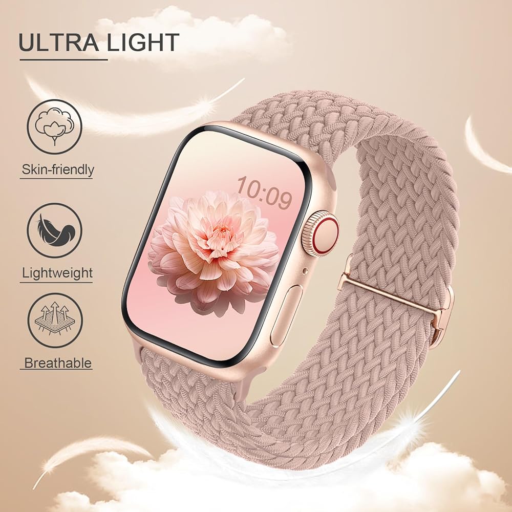 متوافق مع جميع موديلات ساعة Apple - AMSKY مضفرة قابلة للتمدد لسوار ساعة Apple 40 مم 41 مم 38 مم 44 مم 42 مم 45 مم 46 مم 49 مم، متوافق مع سلسلة iwatch 10، سلسلة Se، سلسلة 9، سلسلة Ultra، سلسلة 8، سلسلة 7، سلسلة 6، سلسلة 5 ، السلسلة 4، السلسلة 3، السلسلة 2، السلسلة 1. يرجى التحقق من المقاس الموجود على الجزء الخلفي من iwatch الخاص بك لاختيار المقاس المناسب.