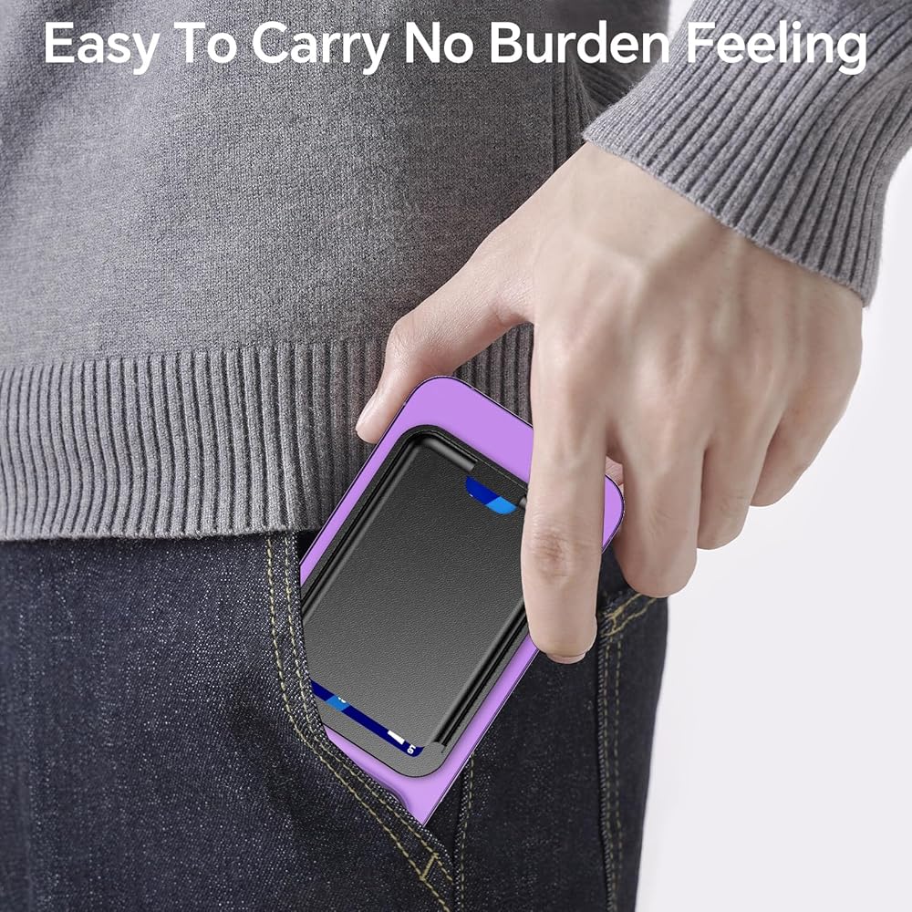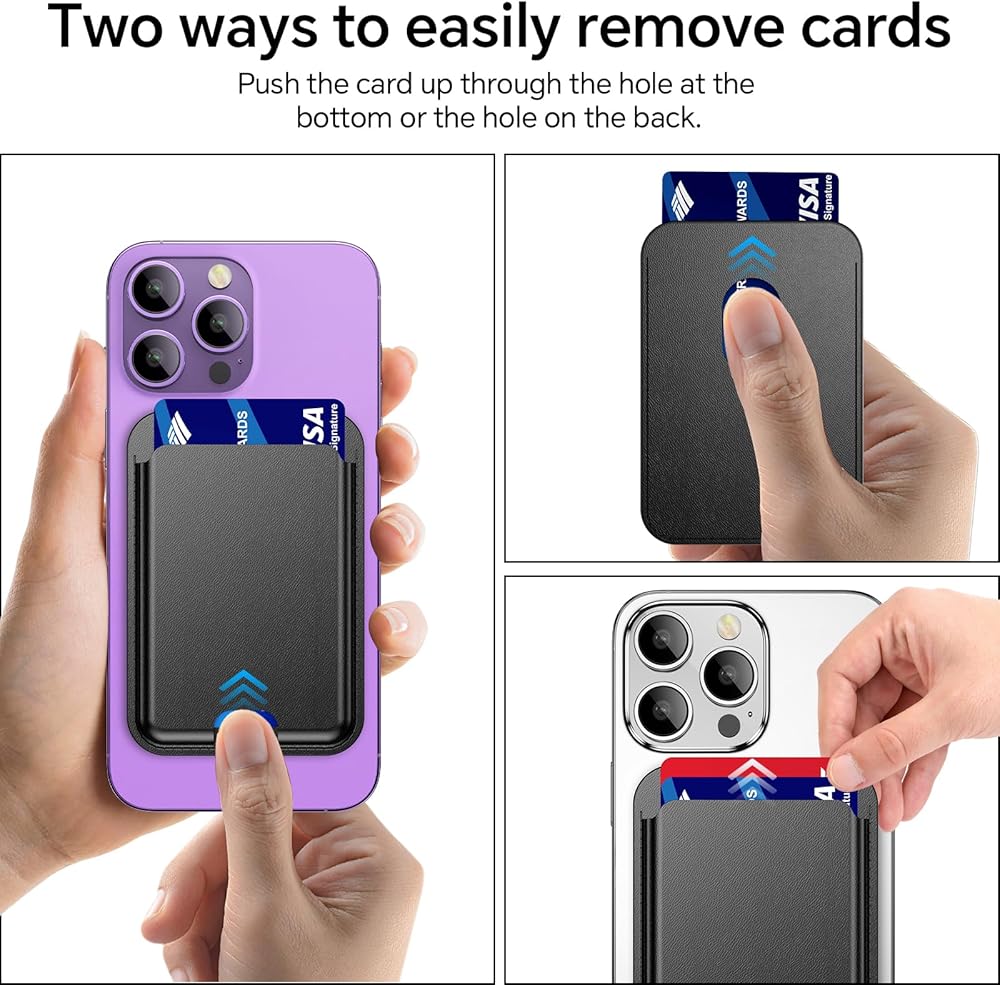 • ✅[سهولة إخراج البطاقات]: فقط اضغط على الفتحة الفارغة في محفظة Mag-Safe، وادفع البطاقة للخارج، ثم اسحب البطاقة.