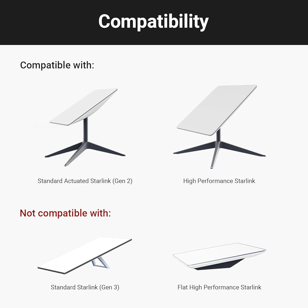 - Compatible with Standard Actuated (V2) Starlink and High Performance Starlink.