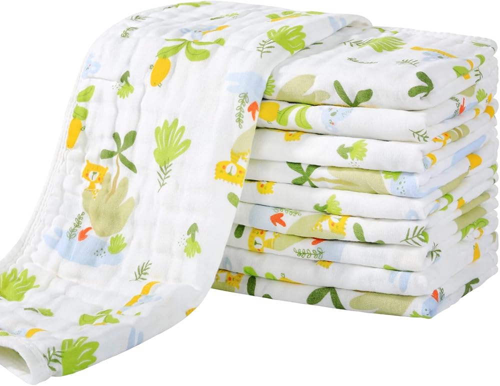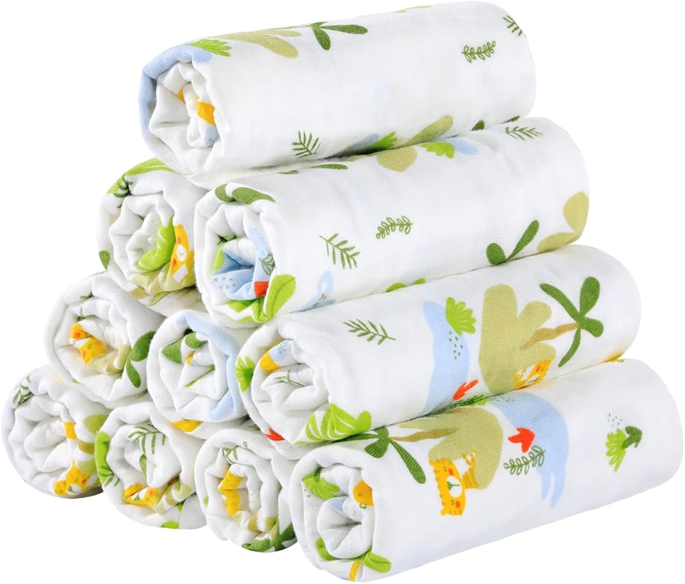 قماش تجشؤ موسلين للأطفال من 10 قطع من مناشف الأطفال المصنوعة من القطن بنسبة 100% للأولاد والبنات، مقاس كبير 50.8 سم × 25.4 سم، فائقة النعومة وذات قدرة على الامتصاص.