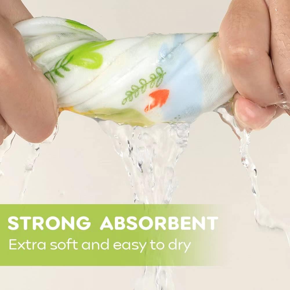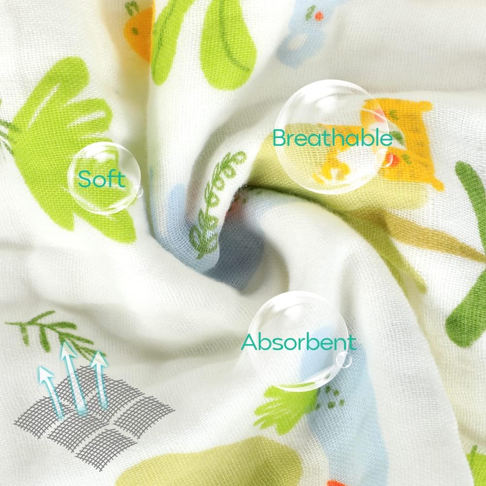 ناعمة وممتصة: يوفر الهيكل الرقيق لأقمشة التجشؤ من الموسلين تأثيرًا مريحًا وجيد التهوية. مقاس كبير 50.8 سم × 25.4 سم يوفر أقصى قدر من التغطية، ويمتص اللعاب والسوائل المنسكبة في ثوانٍ، مما يحافظ على الملابس جافة ومريحة.