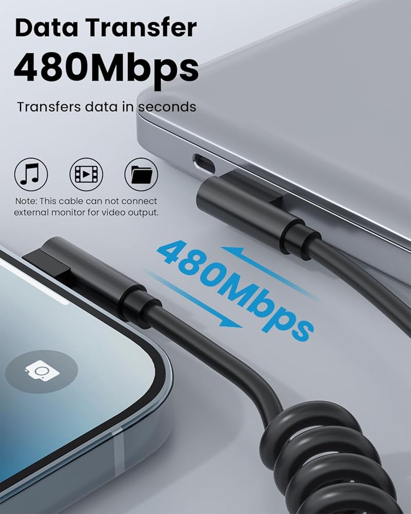 شحن سريع ومزامنة البيانات: يدعم الشحن السريع 2.4 أمبير وسرعات نقل البيانات تصل إلى 480 ميجابايت/ثانية من أجل مزامنة فعالة