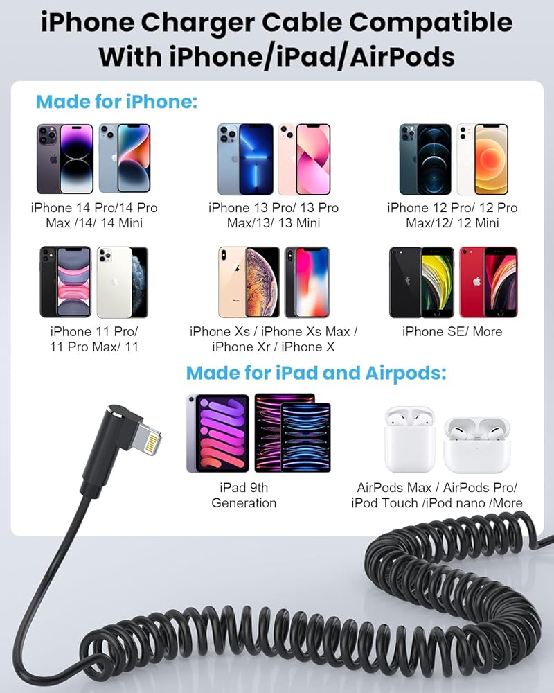 سلك iPhone للسيارة: سلك iPhone قصير مدمج وقابل للسحب لوحدة تحكم سيارة منظمة، يمتد حتى 2-3 أقدام عند الحاجة