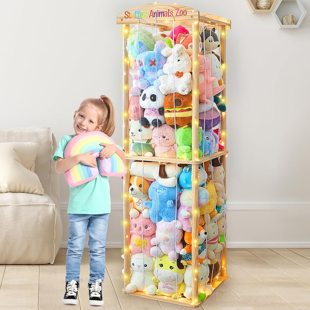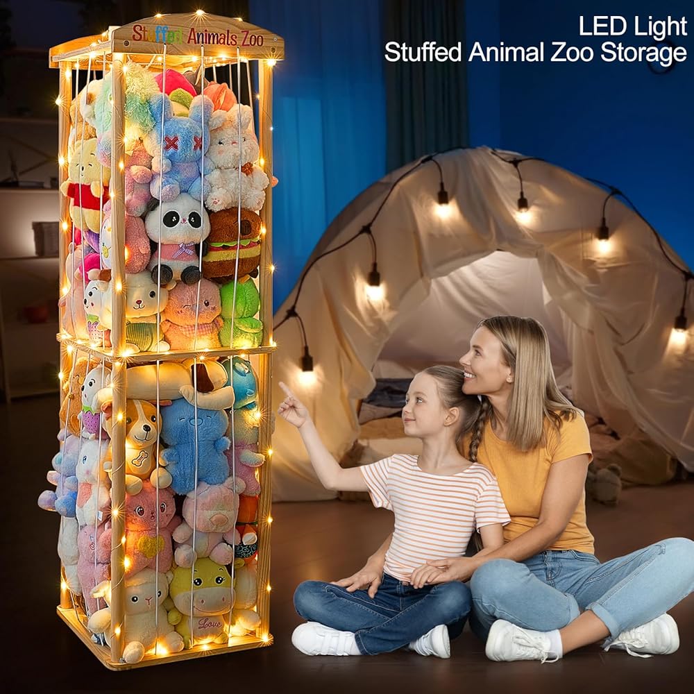 تخزين الحيوانات المحشوة مع ضوء LED: تم تصميم حديقة الحيوانات المحشوة لدينا عموديًا، وتوفر المساحة، ومريحة لتخزين الحيوانات المحشوة للأطفال؛ مع ضوء LED وملصقات الحروف الممتعة التي يمكنك صنعها بنفسك، مما يسمح لك ولأطفالك بتزيين حديقة الحيوان الخاصة بهم والاستمتاع بترتيب ألعاب الحيوانات المحشوة.