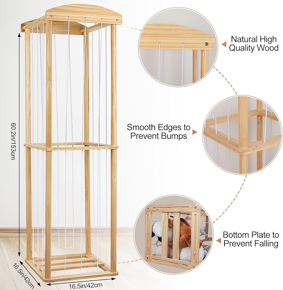 سعة وحجم كبير: منظم الحيوانات المحشوة هو القرار الجيد لتخزين الحيوانات المحشوة؛ يبلغ حجم حامل الحيوانات المحشوة لدينا 16.5 × 16.5 × 60.2 سم، ويمكنه حمل الألعاب الصغيرة إلى الحيوانات المحشوة الكبيرة أو المناشف أو الملابس أو البطانيات أو الألعاب الأخرى، وهو رائع لمساعدة الأولاد والبنات على تنظيم ألعابهم والحفاظ على غرفتهم مرتبة.