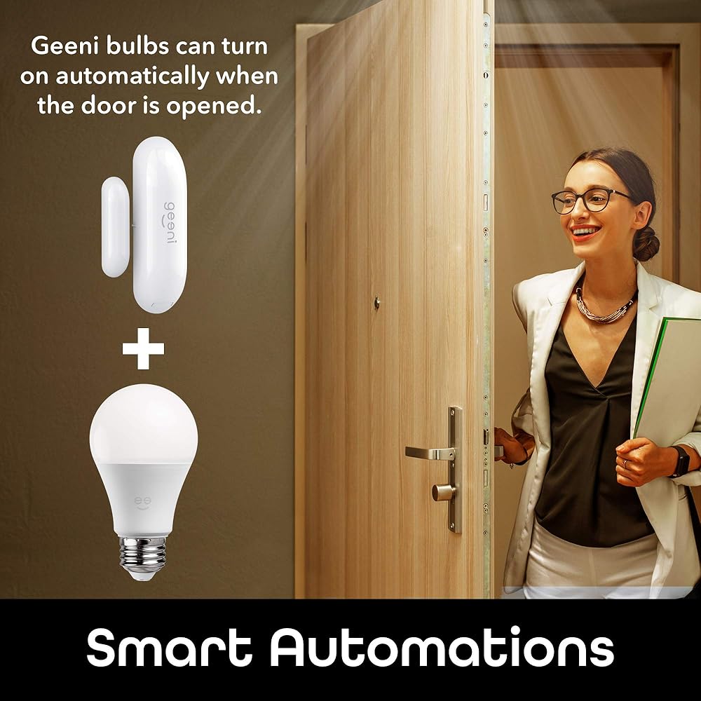 التحكم من أي مكان: باستخدام شبكة Wi-Fi المنزلية، يمكنك إعداد إجراءات تلقائية مع منتجات Geeni Smart Home الأخرى مثل تشغيل الأضواء تلقائيًا عند فتح الباب.
