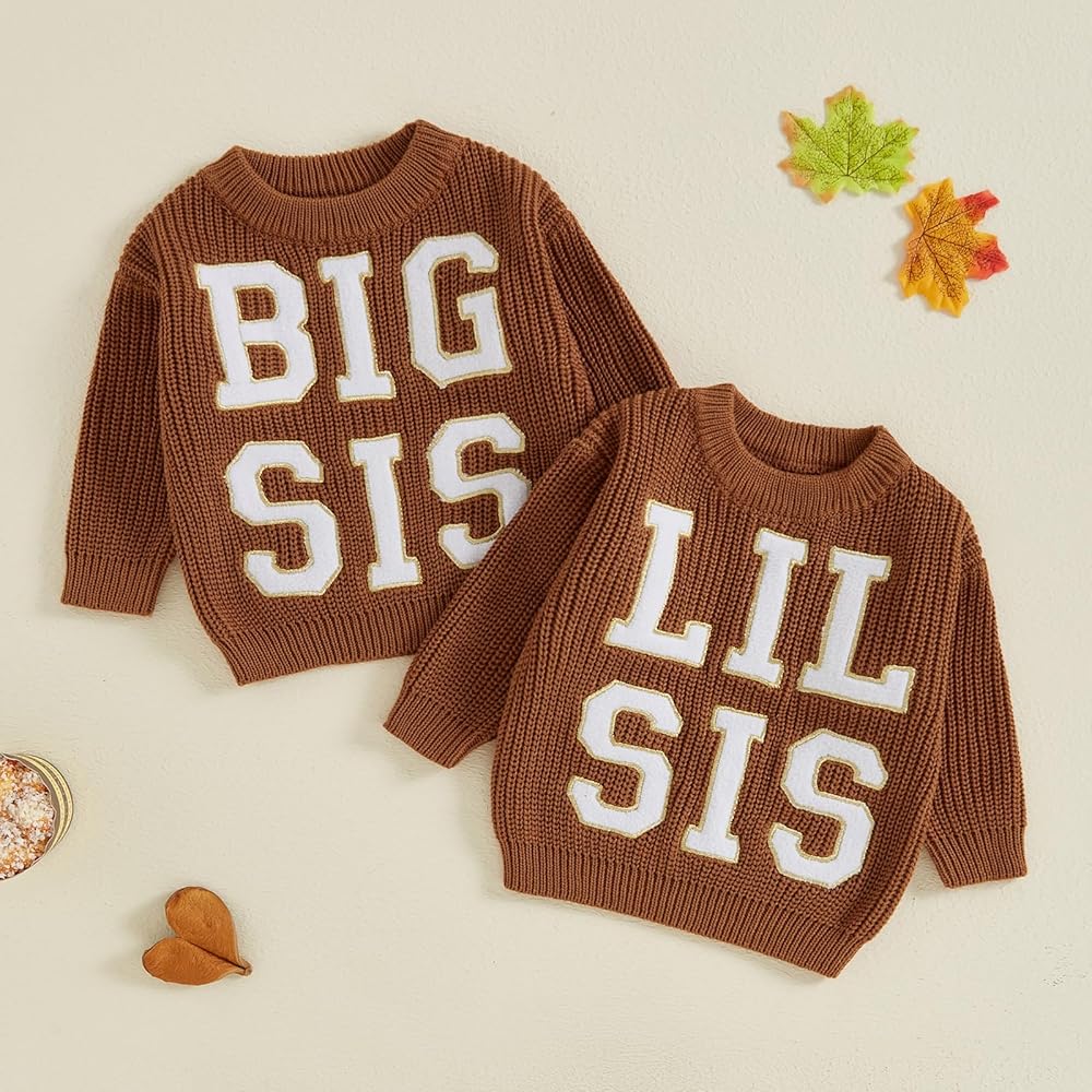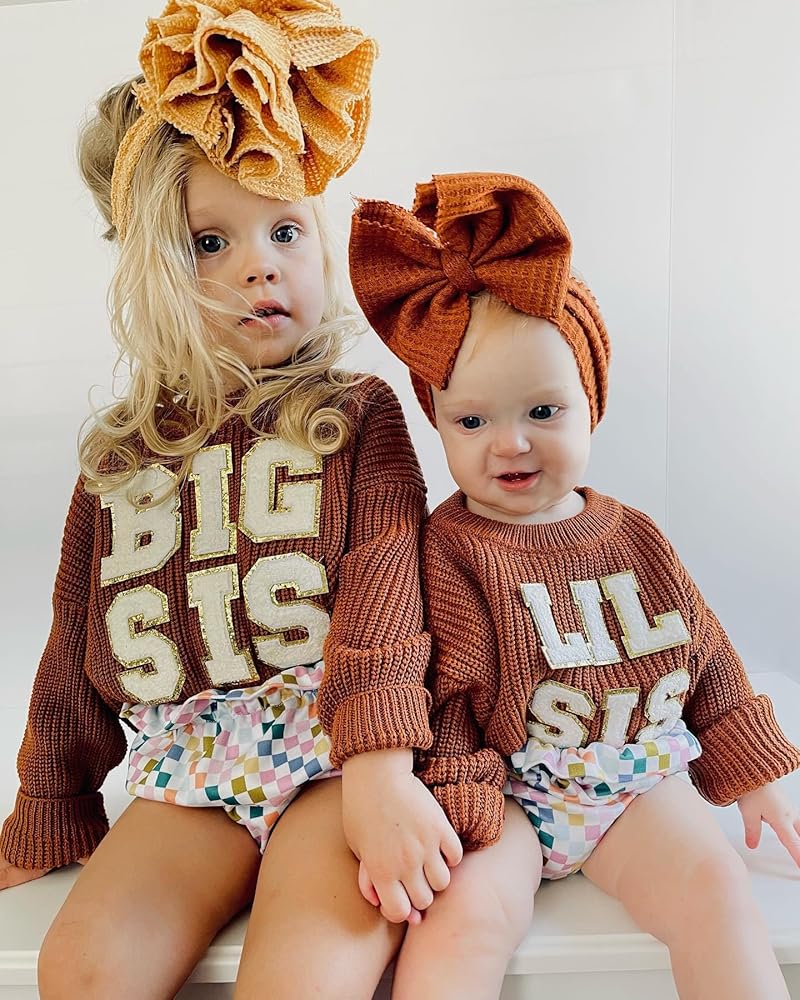 Newborn toddler baby girl fall winter clothes, big sister little sister matching outfits toddler and baby, toddler baby girl chunky knit sweater pullover sweatshirt, matching sister outfits girl and baby, big sis lil sis matching shirts, big sister shirts for girls fall sweatshirt knit sweater, big sister announcement shirt, little sister newborn outfit winter.