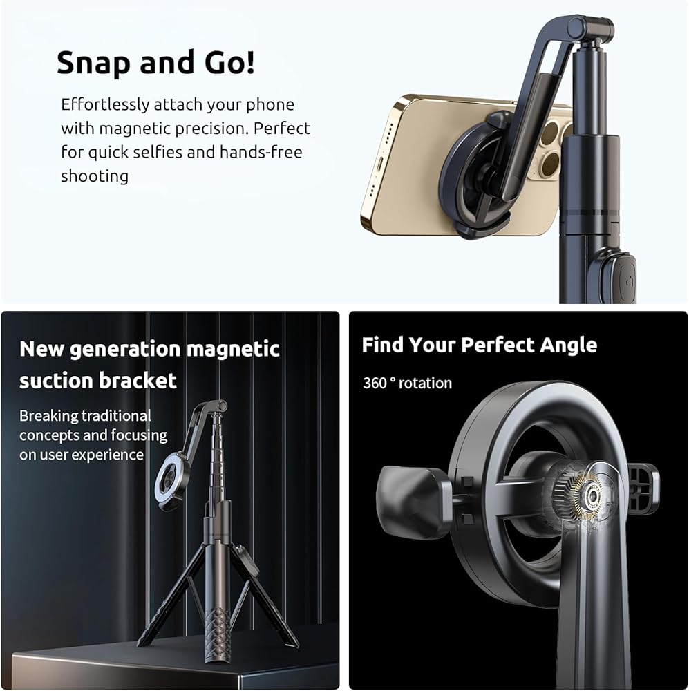 📸 حامل ثلاثي عصا سيلفي مغناطيسي: قم بتوصيل هاتفك بسهولة باستخدام حامل مغناطيسي؛ رائعة لالتقاط صور السيلفي والتصوير بدون استخدام اليدين.