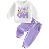 Baby Girl Fall Clothes Birthday Girl Outfit Letter Embroidery Sweatshirt Long Sleeve Pullover Tops & Pants 2Pcs Set