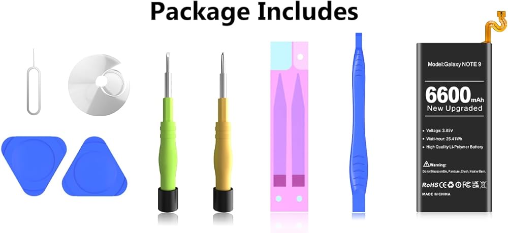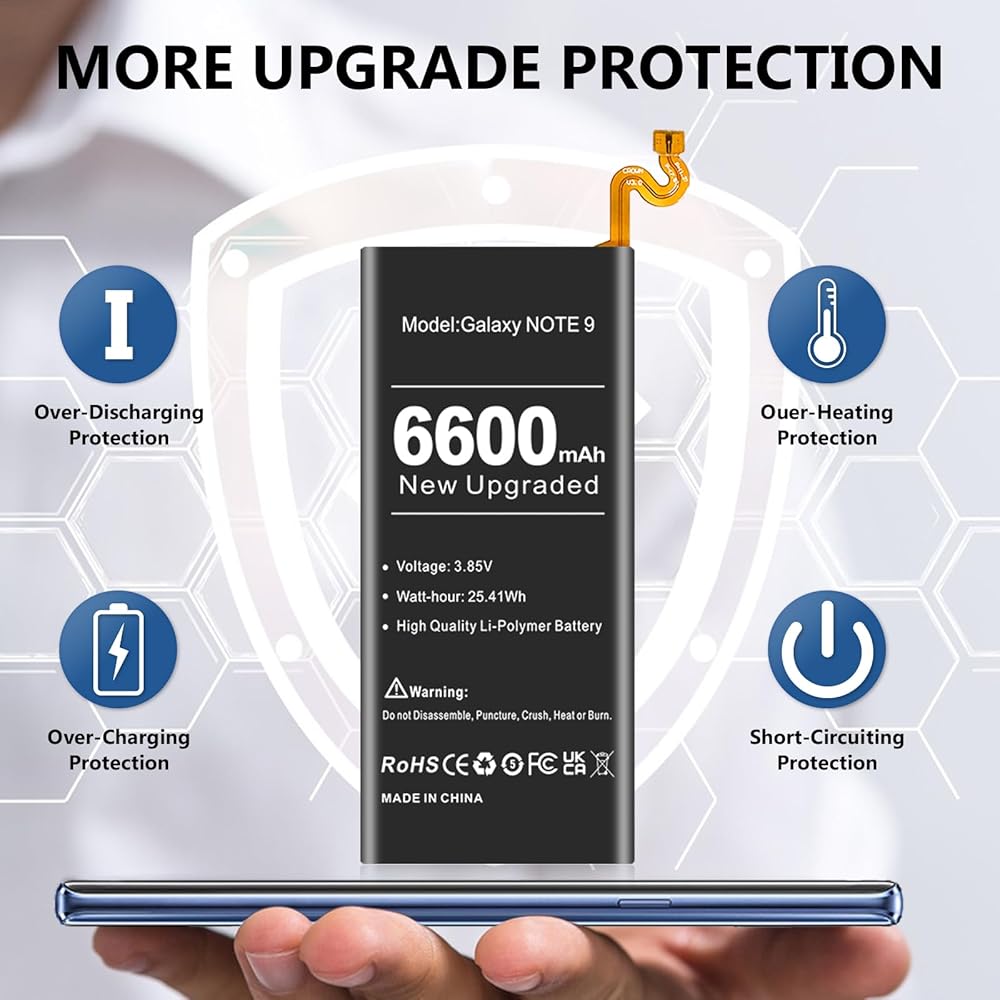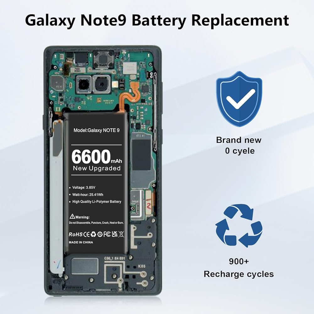 【جودة عالية】تضمن الخلايا من الدرجة A+ عمرًا أطول للبطارية، البطارية البديلة لمجموعة بطاريات Samsung Galaxy Note9 متضمنة أدوات الإصلاح والتعليمات. أدوات كاملة وتعليمات واضحة. حتى لو كنت غير محترف، يمكنك أيضًا اتباع التعليمات لتثبيت البطارية خطوة بخطوة. نقترح عليك مشاهدة المزيد من مقاطع الفيديو ذات الصلة حول استبدال البطارية على YouTube قبل استبدالها.