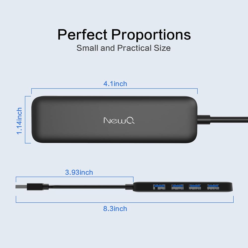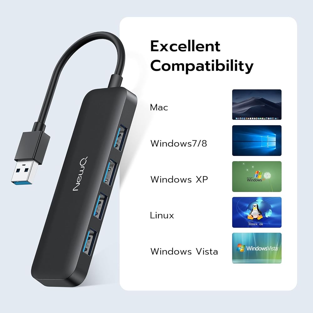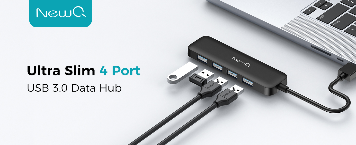 موزع USB 4 منافذ NewQ 4 في 1 USB 3.0 موزع USB صغير الحجم، محول USB محمول فائق النحافة بسرعة 5 جيجابت في الثانية متوافق مع نظام التشغيل MacOS/Windows وXbox ومحرك الأقراص المحمول والأقراص الصلبة المحمولة ولوحة المفاتيح والماوس وما إلى ذلك