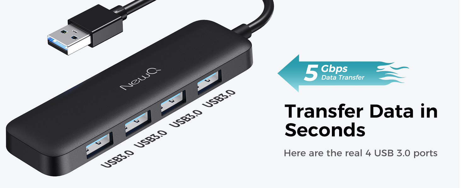 4 Ture USB 3.0 Hub: المنافذ الأربعة لمقسم USB الصغير هذا كلها USB 3.0 أسرع 10 مرات من USB 2.0 الذي يصل سرعته إلى 5 جيجابت في الثانية. يمكن نقل الفيلم في ثوان. قل وداعًا لأوقات الانتظار عند إرسال واستقبال الملفات المهمة.