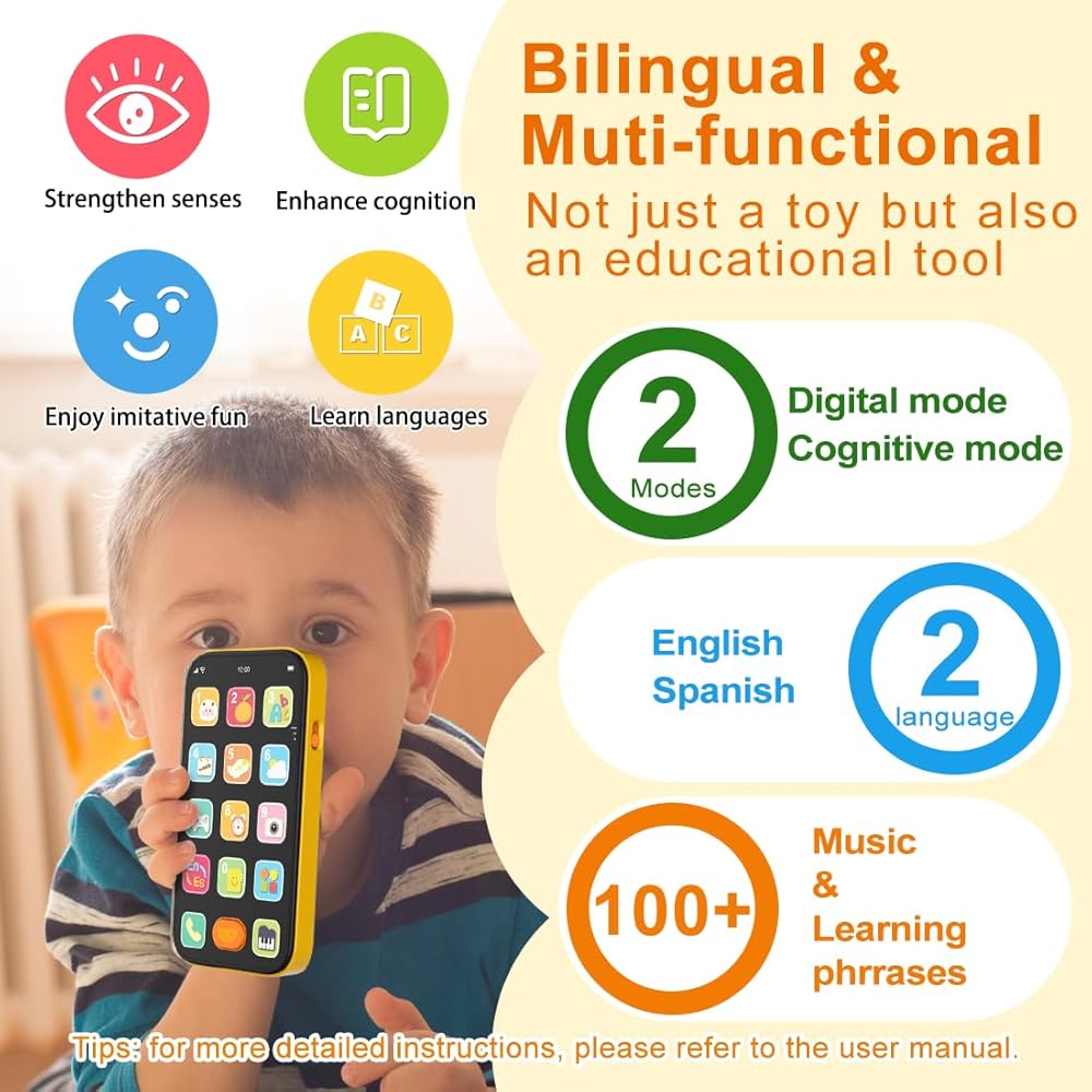 لعبة هاتف أطفال ثنائية اللغة: يتميز هاتف الأطفال الخلوي باللغتين الإنجليزية والإسبانية، مما يوفر طريقة ممتعة وجذابة لتعزيز التعلم المبكر والتطور الإدراكي. كل أيقونة في لعبة الهاتف الخلوي للأطفال لها تأثيرات صوتية في هاتين اللغتين، يمكن للأطفال تعلم لغات مختلفة أثناء اللعب. لعبة مضيئة للأطفال مع متعة لا نهاية لها في متناول أيديهم.