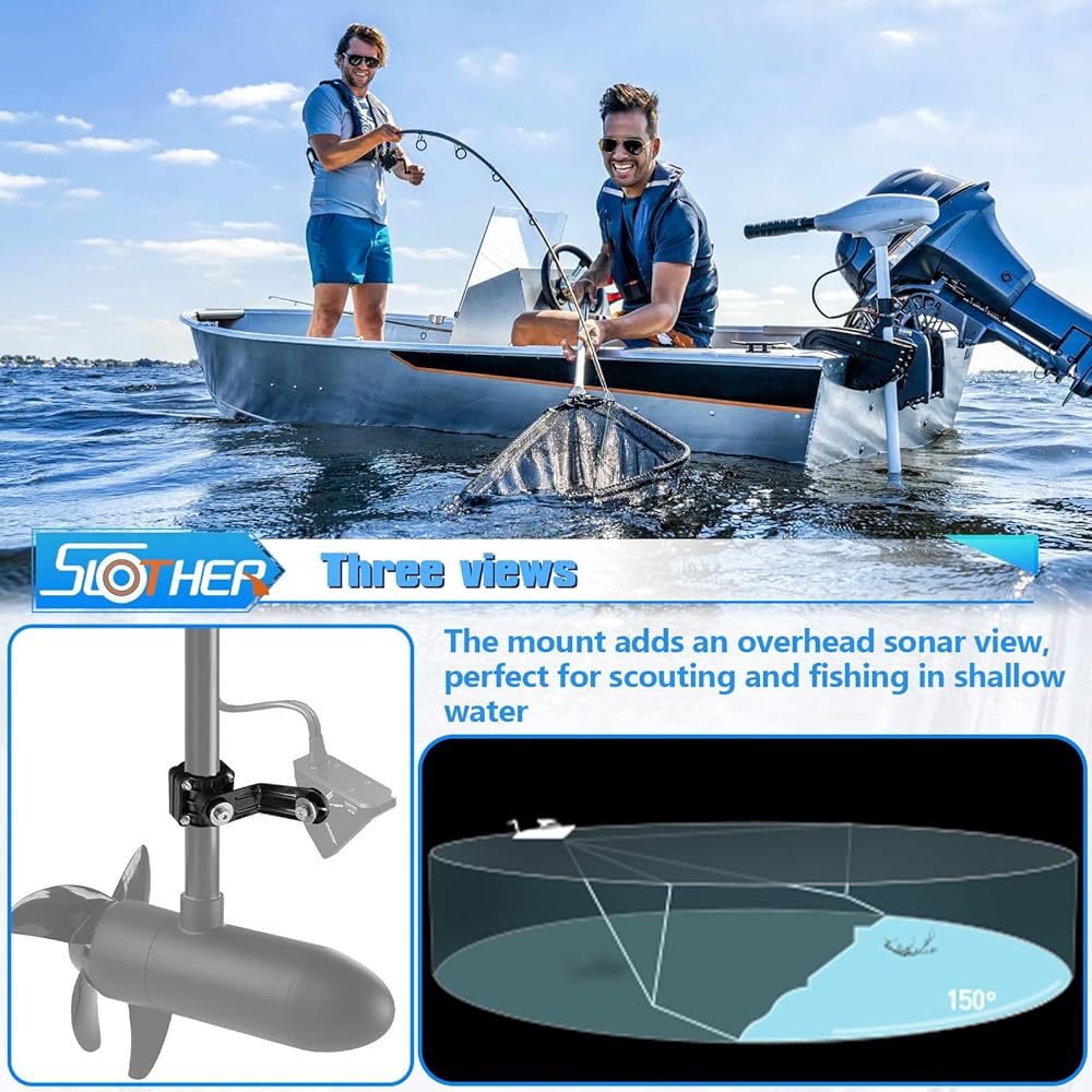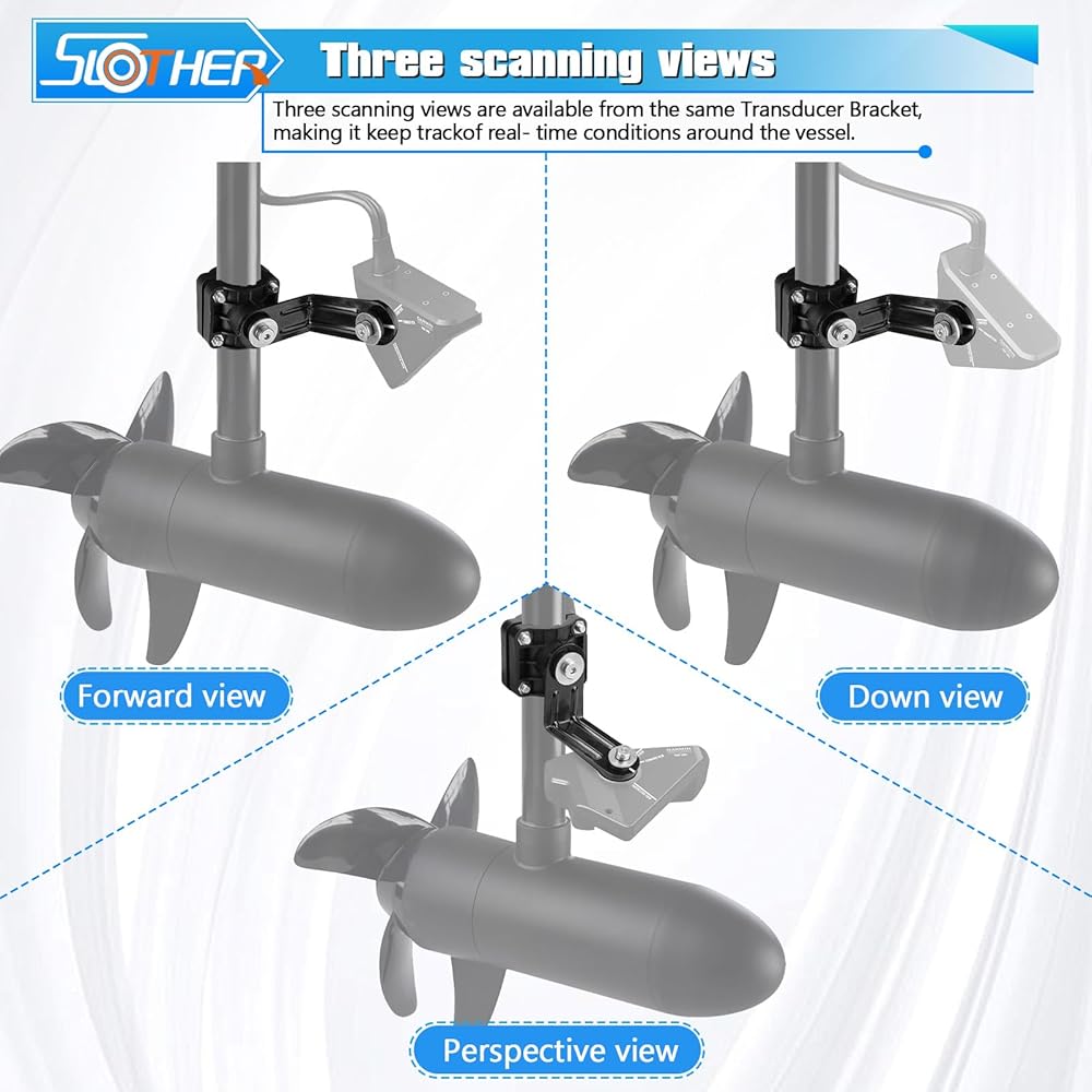 • زاوية تركيب محول الطاقة قابلة للتعديل لتناسب أسلوب الصيد الخاص بك. توفر شريحة التثبيت المصممة بشكل مبتكر ثلاثة أوضاع سونار للمسح الديناميكي في الوقت الحقيقي: للأمام والأسفل والأسفل. يوفر ثلاثة مناظر للسونار المسحي لسهولة الوصول إلى الظروف في الوقت الفعلي حول القارب، وهو مثالي لاستكشاف المياه الضحلة وصيد الأسماك، مما يعزز تجربة الصيد وكفاءته.
