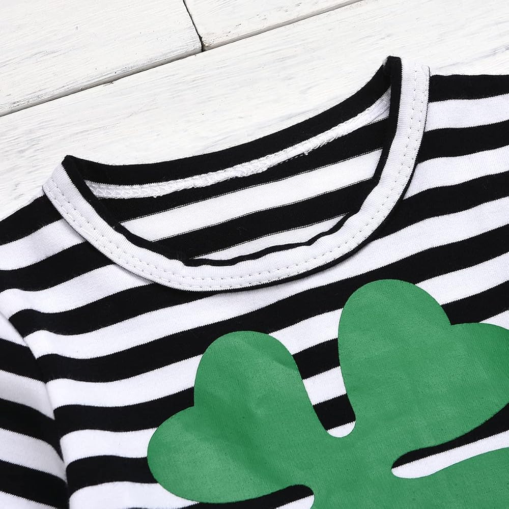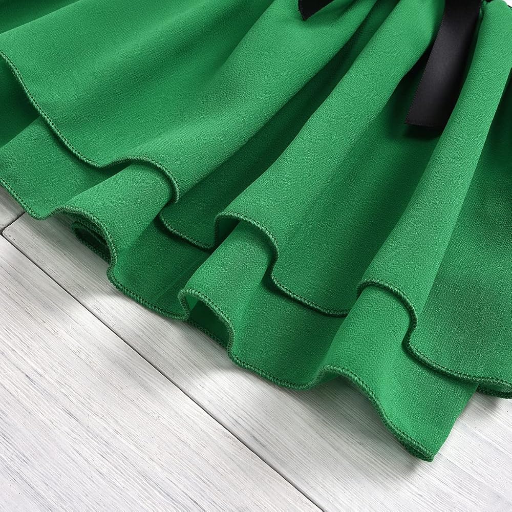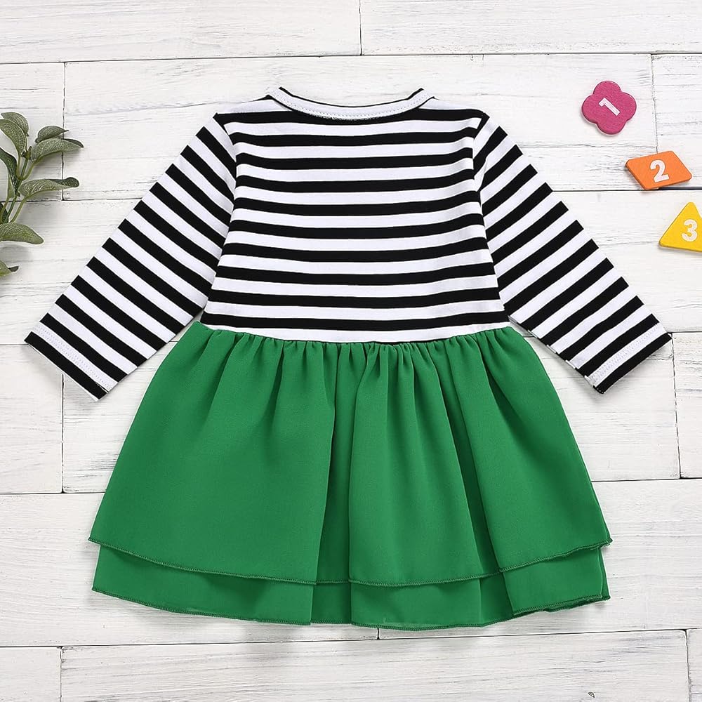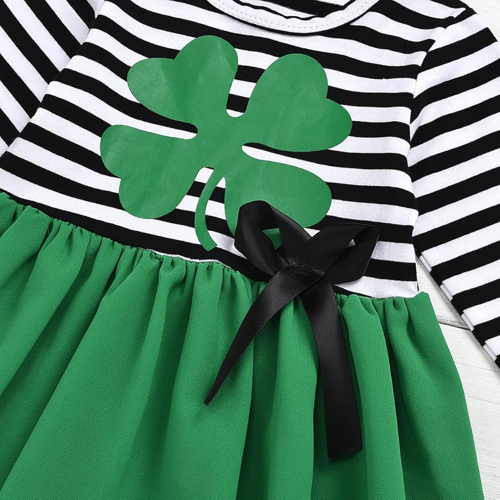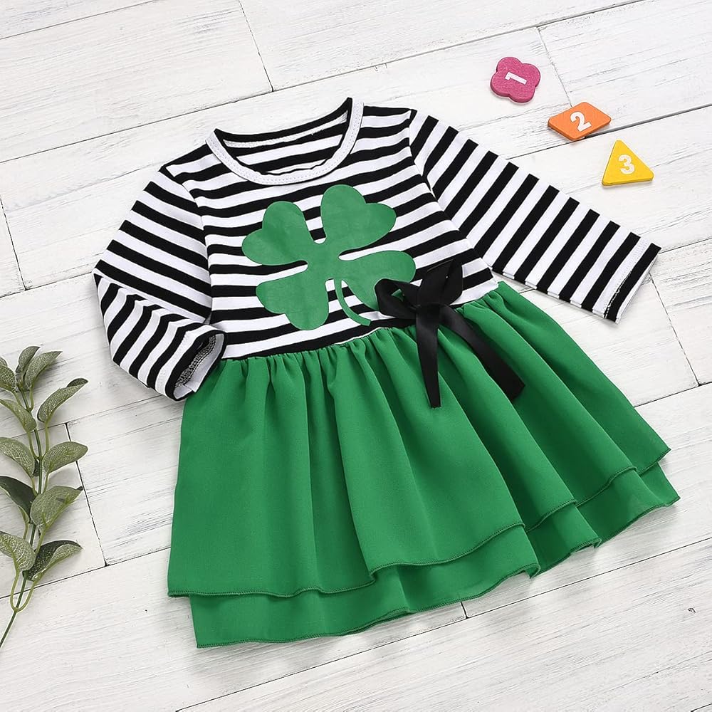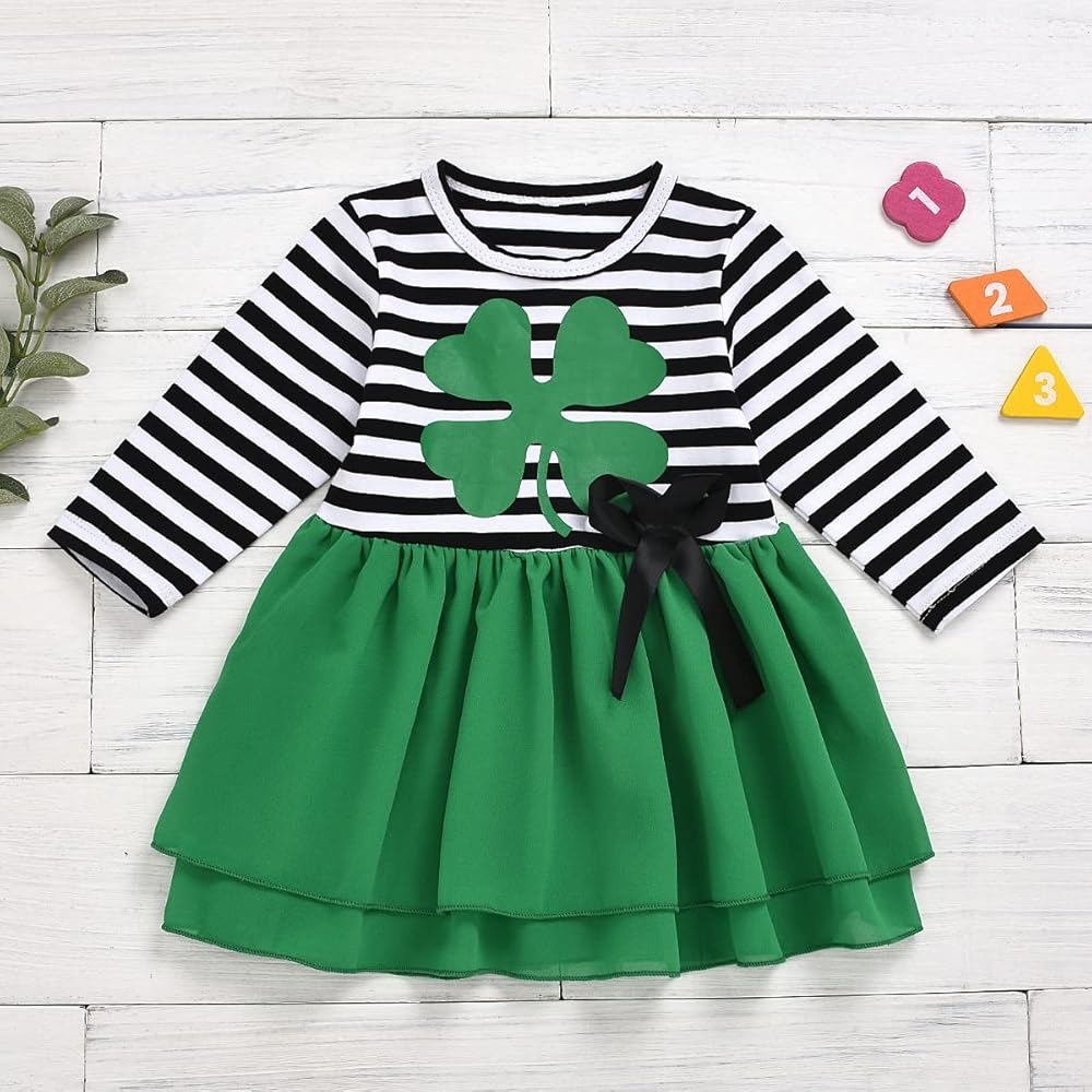 • فستان مخطط بأكمام طويلة، فستان توتو بطبعة نبات النفل الأخضر مع تصميم عقدة على شكل فيونكة، يجعل فتاتك أكثر جاذبية في المهرجانات.