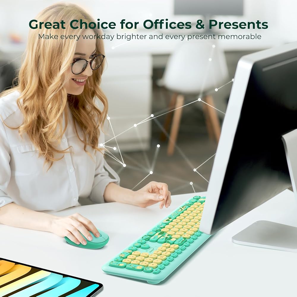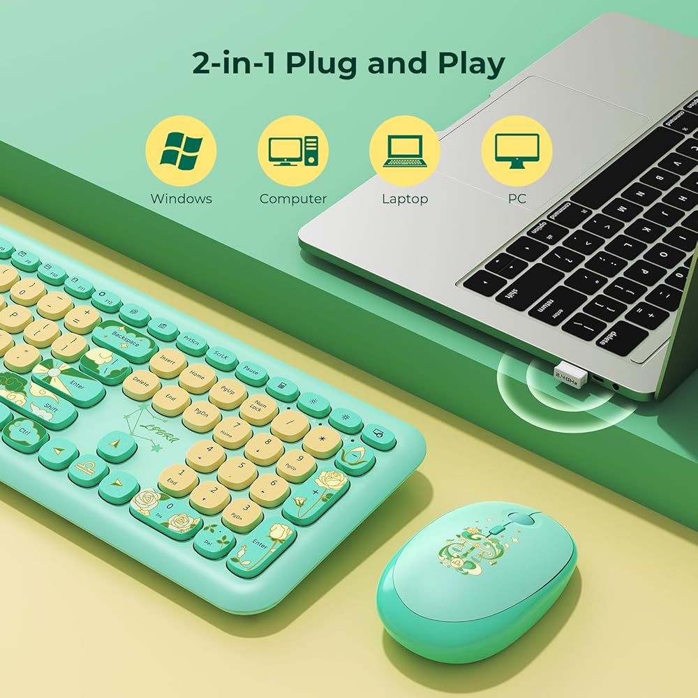 خيار رائع للمكاتب والهدايا: ارفع مستوى تجربة عملك اليومية من خلال لوحة المفاتيح والماوس الملونين باللونين الأخضر والأصفر، والمصممين لتعزيز المظهر الجمالي. كما أنها بمثابة هدية لعائلتك وأصدقائك، حيث تقدم لهم مفاجأة مبهجة ولمسة من التقدير القلبي