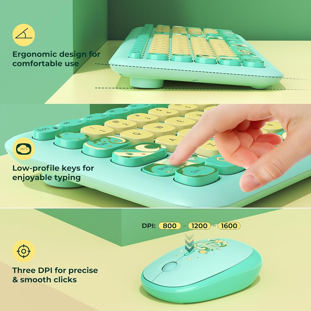 العمل براحة ودقة: تتميز لوحة المفاتيح هذه بتصميم مفتاح منخفض المستوى للحفاظ على ضوضاء الكتابة بمستوى صوت مناسب، مما يوفر تجربة كتابة ممتعة دون إزعاج الآخرين. ويقدم الماوس ثلاث قيم DPI قابلة للتعديل (800، 1200، 1600) لحساسية المؤشر المخصصة