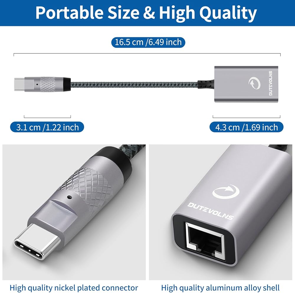 The Dutevolns Ethernet C-type network adapter Durable Connection - It is designed specifically for plug and play connectivity between USB-C devices and wired networks,