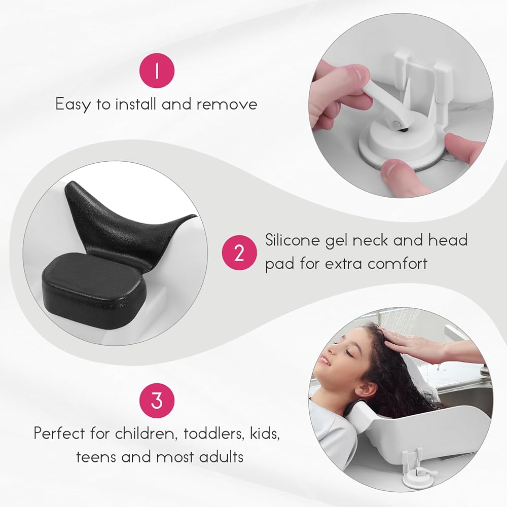 حجم كبير جدًا: أكبر من الموديلات العادية الموجودة في السوق، حوض الشامبو هذا أكثر راحة للأطفال والكبار ويمنع تدفق الماء.