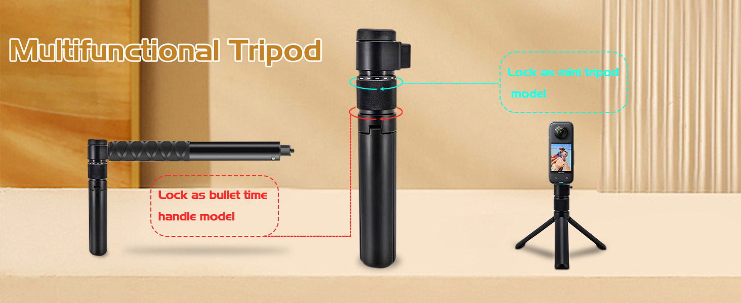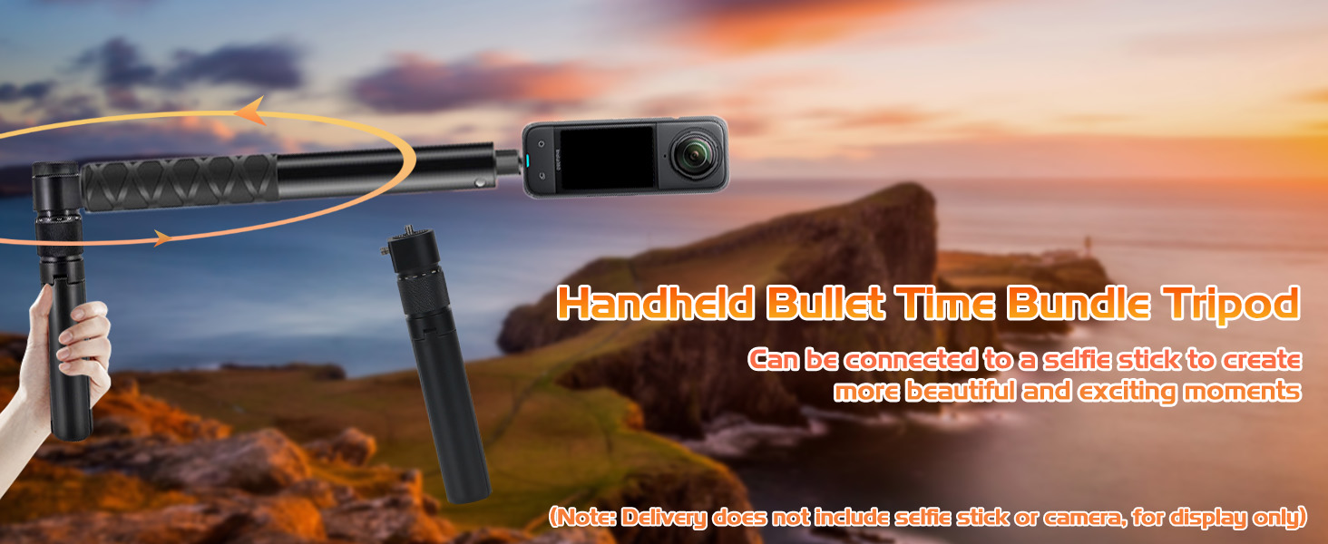 التصوير الخفي: يمكن توصيل حامل ثلاثي إنستا 360 بعصا السيلفي وإزالته تلقائيًا أثناء التصوير بزاوية 360 درجة، مما يتيح لك الوصول دون عائق إلى الزوايا المستحيلة