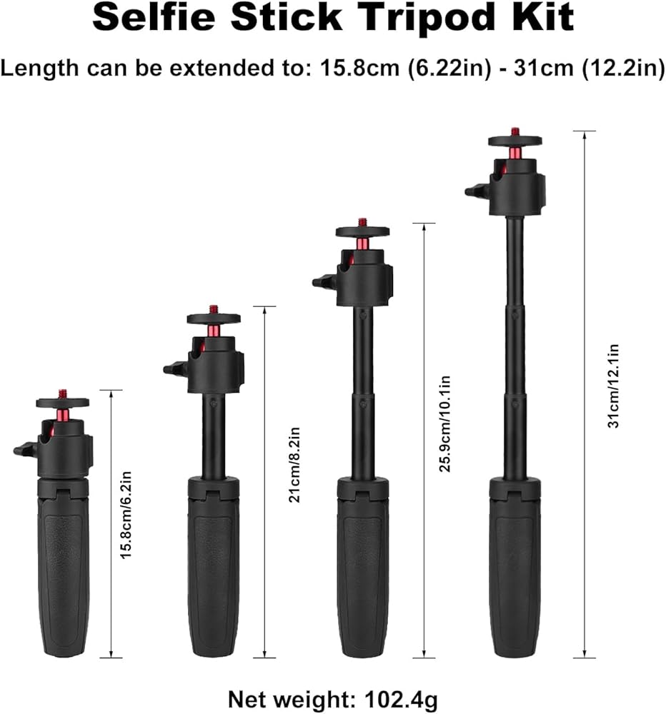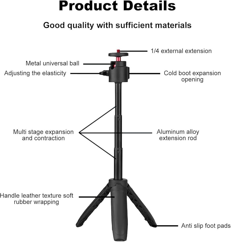 استخدام متعدد الوظائف: يسمح المسمار 1/4 بوصة الموجود على المقبض الدوار بتركيب الكاميرا مباشرة. يمكن استخدامه أيضًا كحامل ثلاثي القوائم صغير لسطح المكتب، وربما يكون مناسبًا لكاميرات الحركة التي ليست ثقيلة جدًا