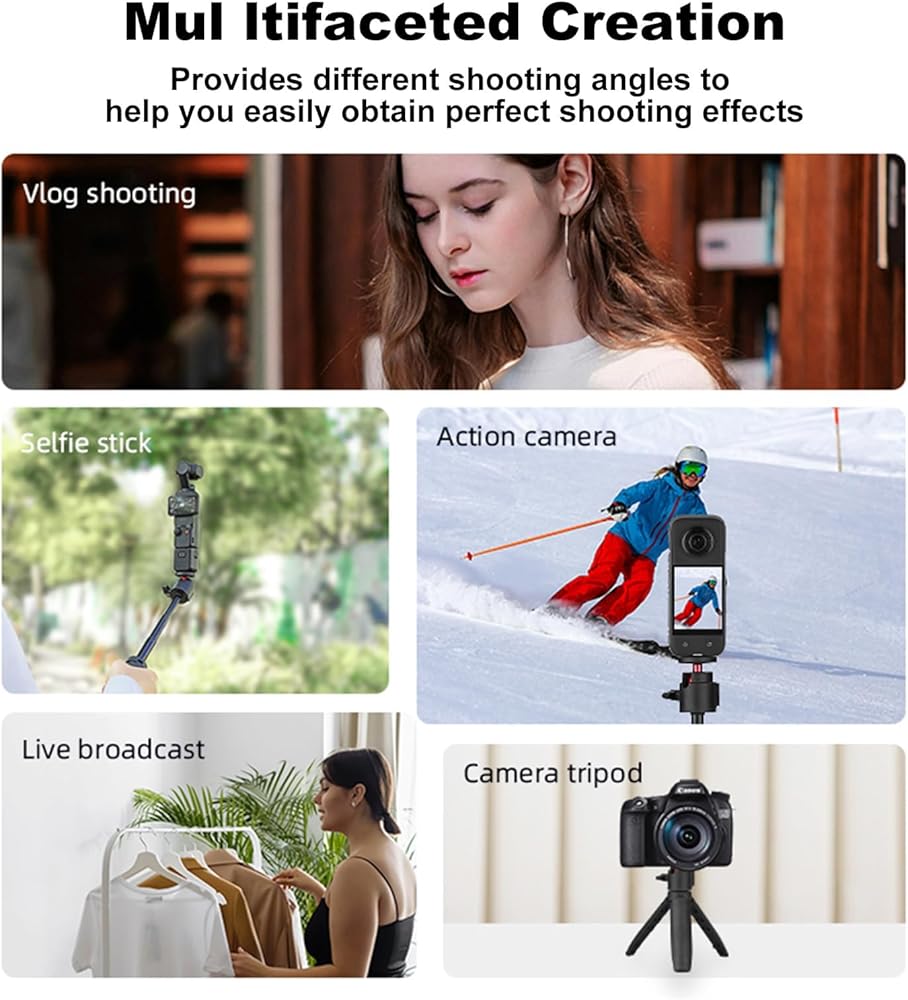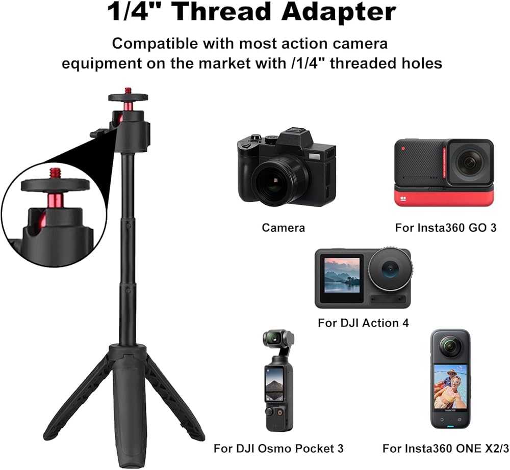 التوافق: الحامل ثلاثي القوائم مناسب لـ Insta360 X4، X3، GO 3S، ONE X2، ONE X، ONE، GO 2، ONE R، ONE RS، لكاميرات GoPro Hero 11 10 9 5 4 3