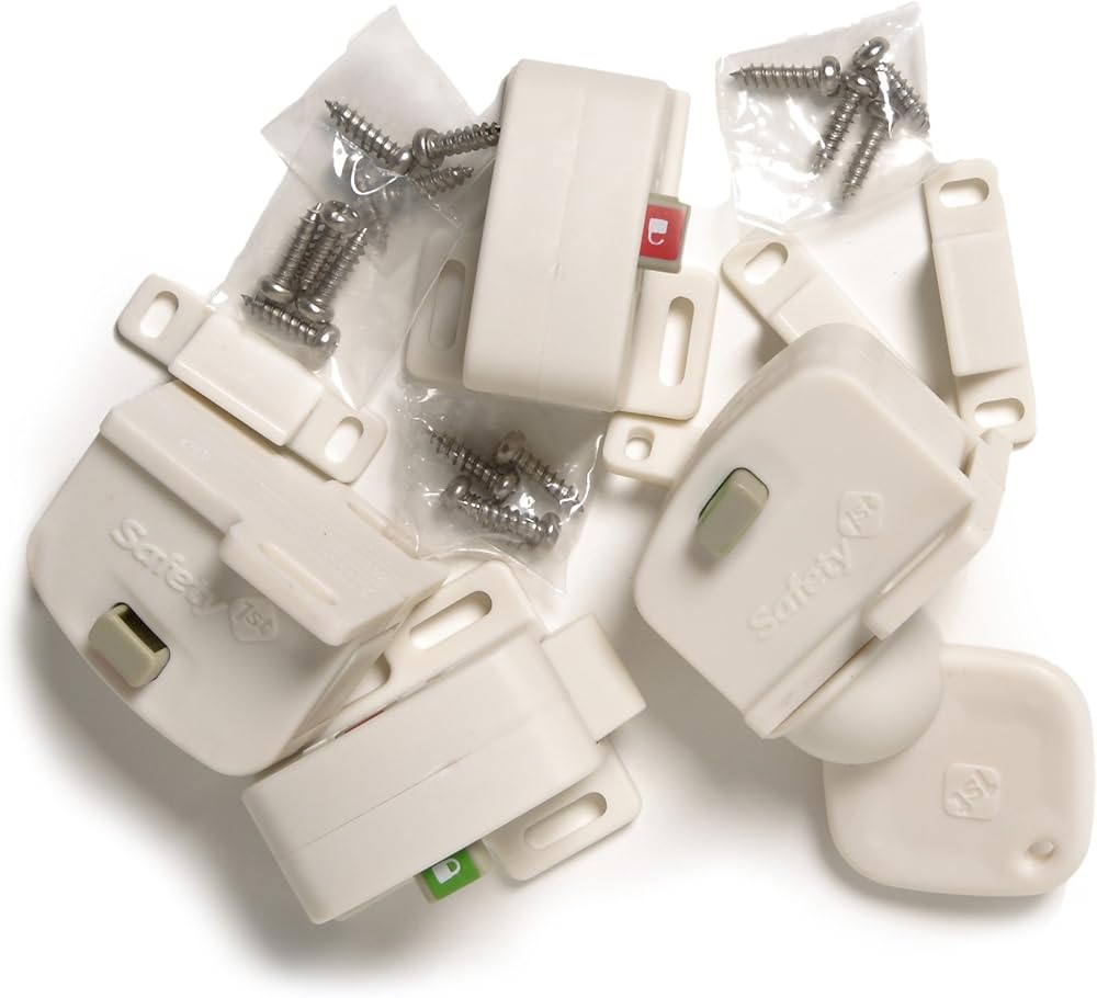 Keep cabinets and drawers off limits to curious little ones with the 5-Piece Complete Magnetic Locking System by Safety 1st. Simply install the lock inside cabinet or drawer and then use the powerful magnetic key to open when needed. This set includes 5 locks and 1 key, allowing you to secure multiple cabinets and drawers. The magnetic key is easy to store high up and out of reach from children and the locks install inside cabinets and drawers, keeping them out of sight. Simply install the lock inside cabinet or drawer and then use the powerful magnetic key to open when needed. Magnetic key is easy to store high up and out of reach from curious children.