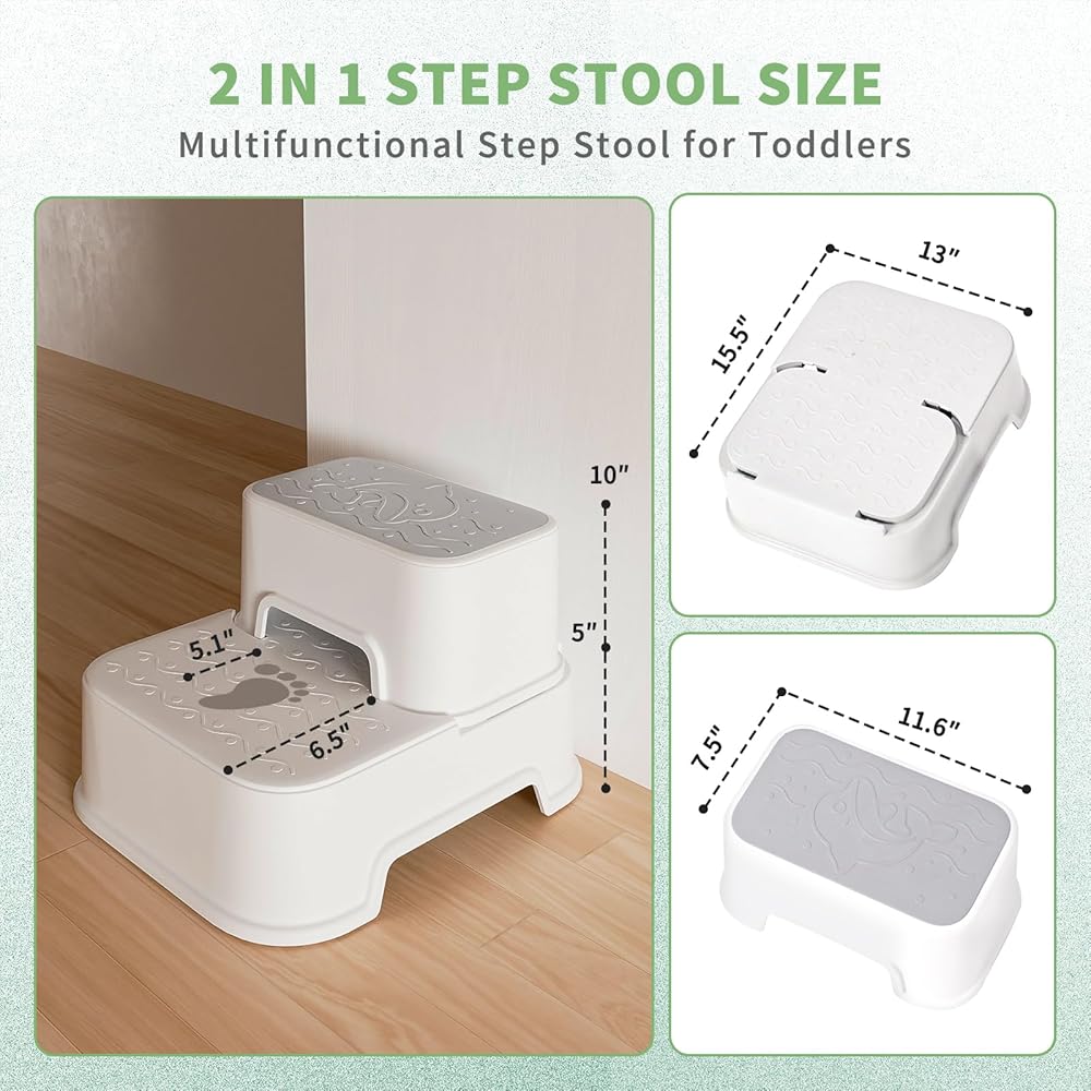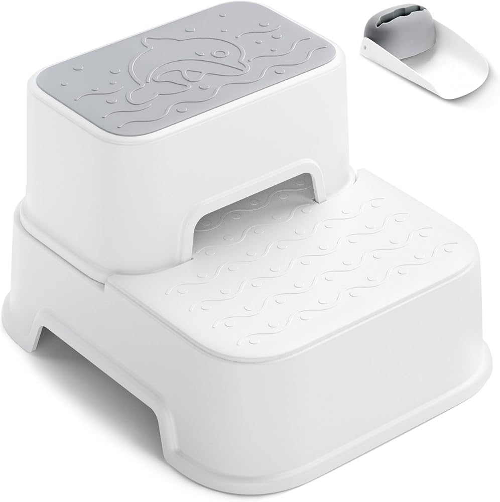 مقعد MangoHood ذو خطوتين للأطفال - مقعد مزدوج للأطفال الصغار، مقعد متعدد الوظائف للمرحاض للأطفال، مقعد مضاد للانزلاق لحوض الحمام، والتدريب على المرحاض، والمطبخ (أبيض - عبوة واحدة)