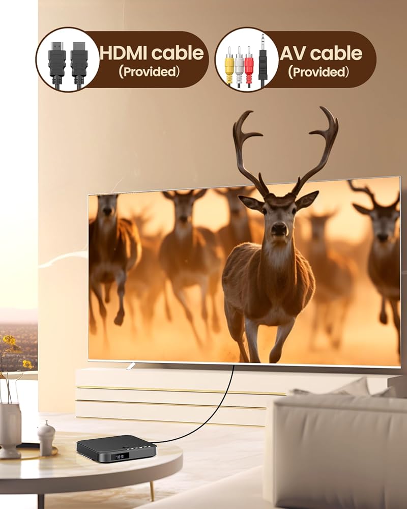 • 【مخرج HDMI / AV & 1080P 】يتصل مشغل HDMI DVD الخاص بنا بأجهزة التلفزيون الذكية وأجهزة العرض باستخدام كابل HDMI المتضمن. مخرج AV مناسب لتوصيل مشغل DVD الصغير بأجهزة التلفزيون القديمة أو أجهزة الصوت/الفيديو الأخرى. مشغل DVD هذا للأجهزة الذكية يقدم التلفزيون تقنية مطورة بدقة 1080 بكسل مع جودة صورة واضحة وألوان نابضة بالحياة لتجربة بصرية رائعة.
