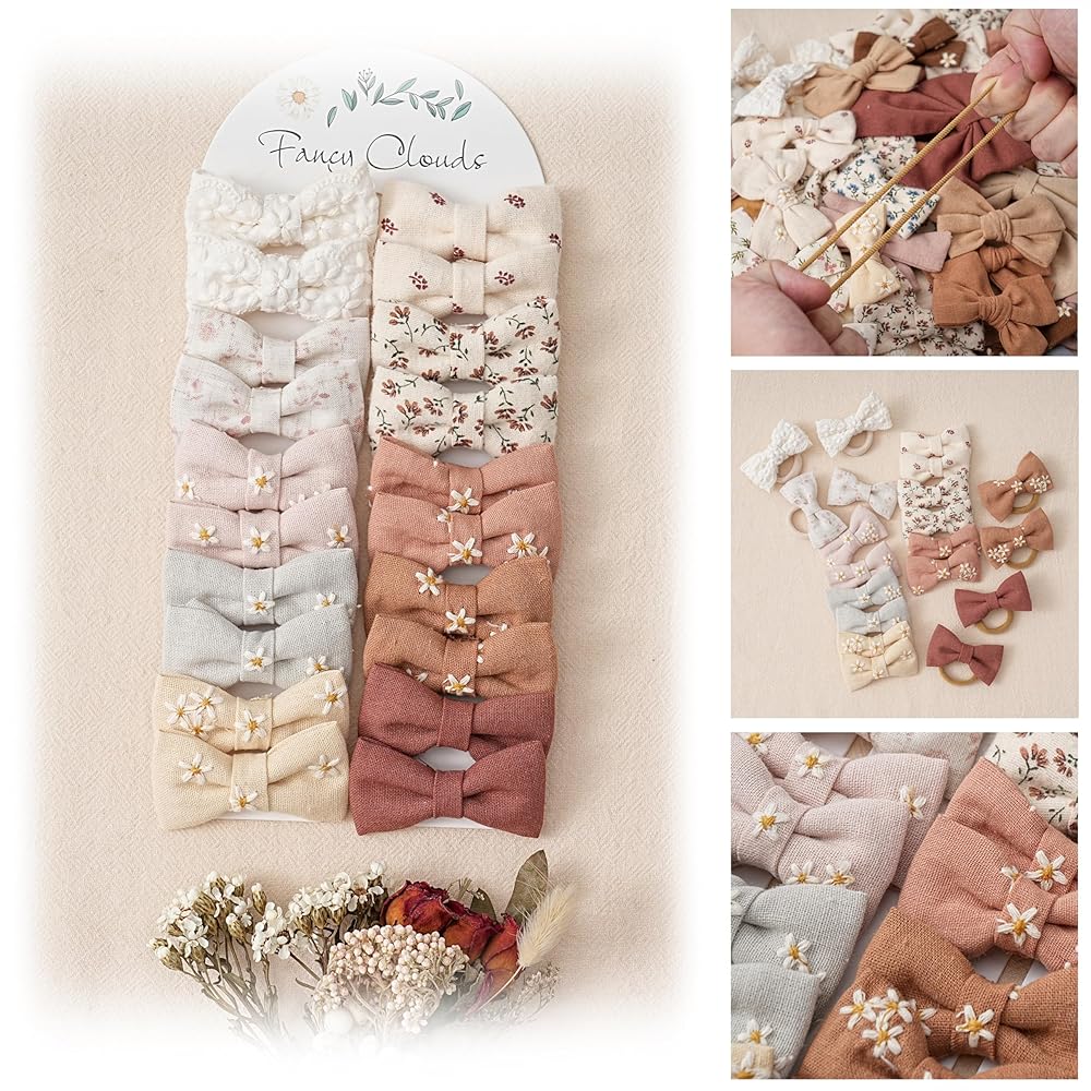 • يتكون هذا المنتج من 12 ربطة شعر مصنوعة يدويًا. يوجد إجمالي ستة ألوان وأنماط تطريز ديزي صغيرة موزعة بشكل عشوائي. يميل مزيج الألوان نسبيًا إلى الألوان الترابية، بما في ذلك الأبيض الفاتح والبني والشوكولاتة والكاكي والأصفر الزنجبيلي والأبيض.