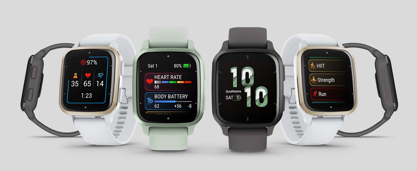 ساعة Wearable4U Garmin Venu Sq 2 GPS الذكية، مراقبة الصحة طوال اليوم، عمر بطارية طويل الأمد، شاشة AMOLED، حزمة البنك الإلكتروني Cool Mint