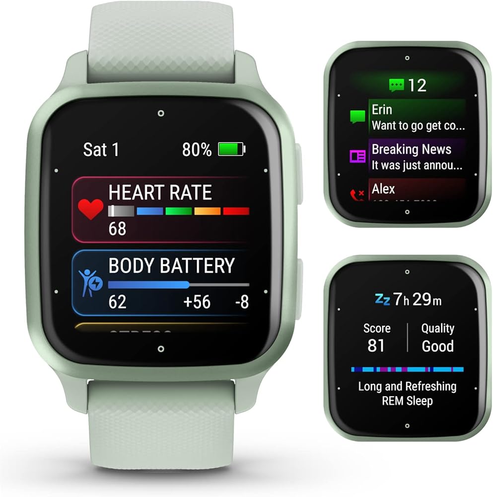 • شاشة ساطعة وعمر بطارية طويل: شاهد كل شيء بوضوح مع نص كبير وسهل القراءة على شاشة AMOLED الساطعة التي تتضمن وضع التشغيل دائمًا، مما يجعلها مثالية لإلقاء نظرة سريعة. مع ما يصل إلى 11 يومًا من عمر البطارية في وضع الساعة الذكية، لن تضطر إلى خلع ساعتك كل ليلة للشحن - مما يعني صورة أكثر اكتمالًا لصحتك على مدار الساعة طوال أيام الأسبوع