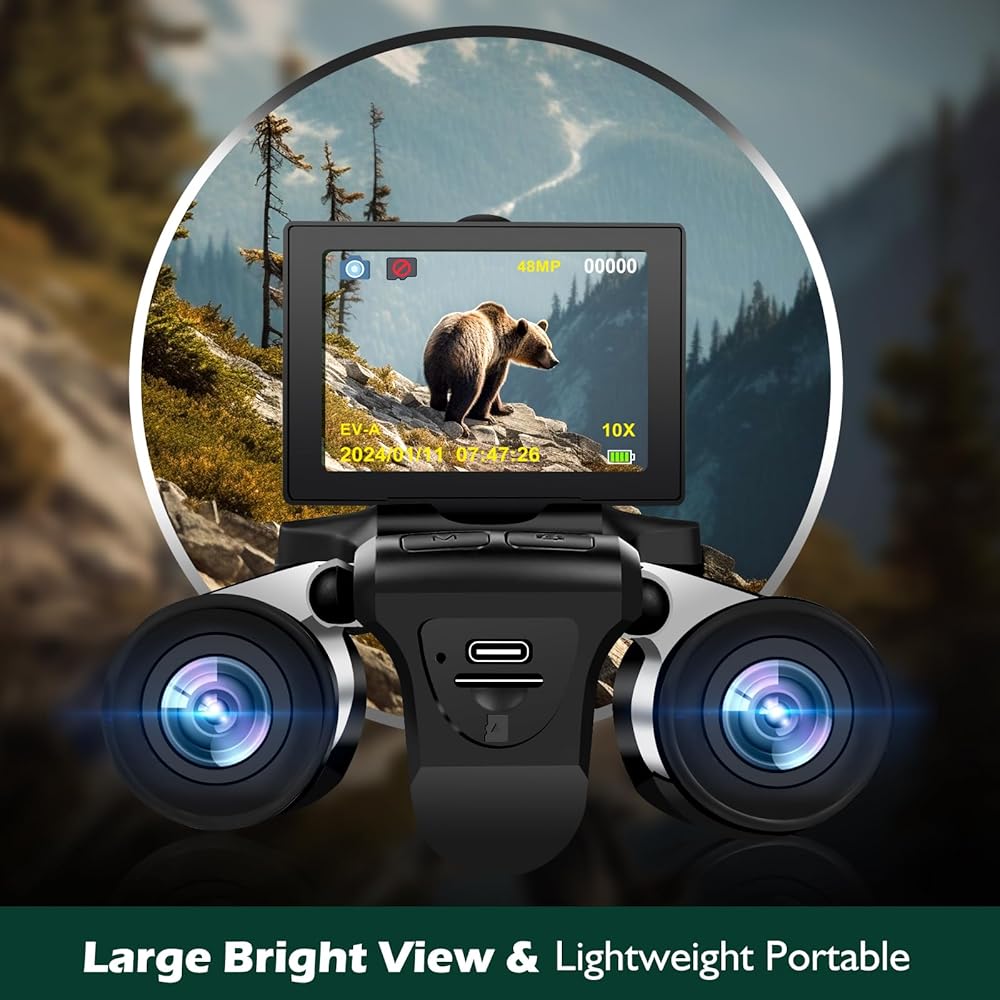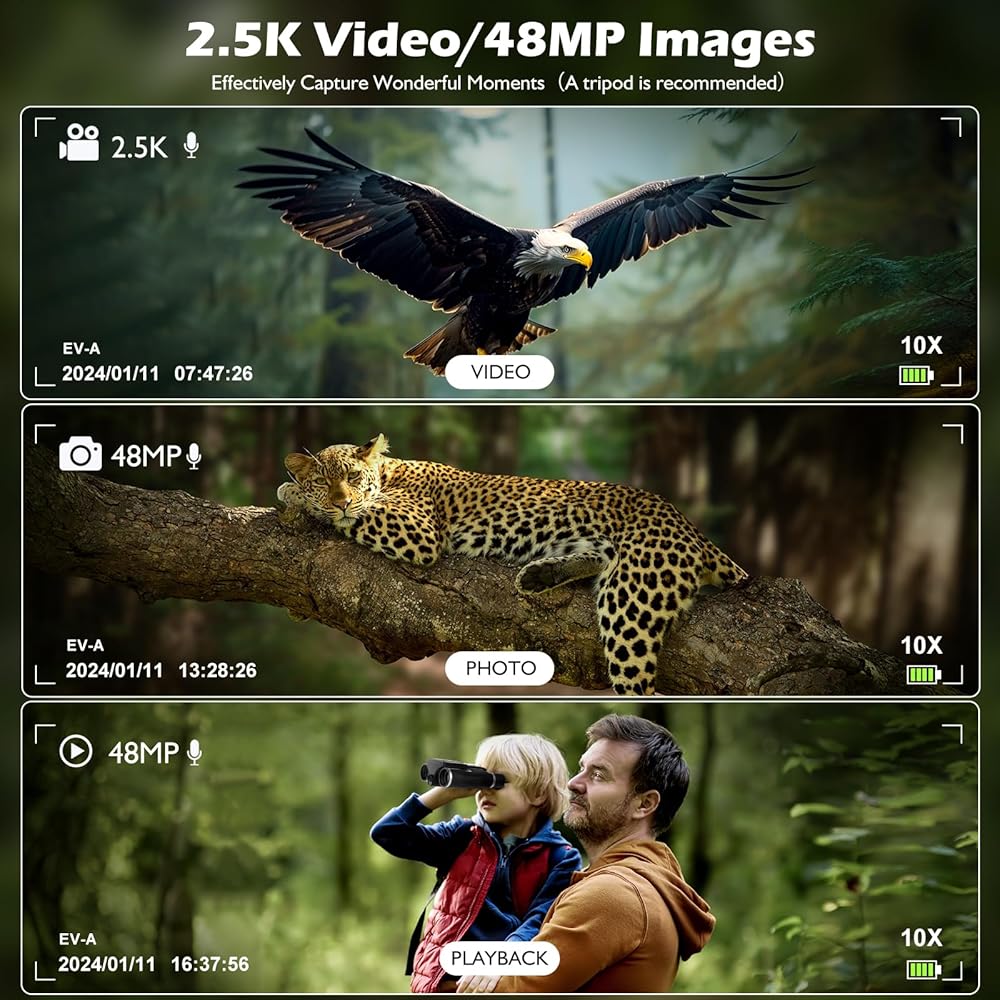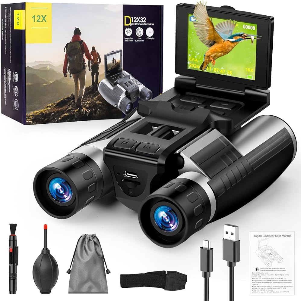 مناظير مع كاميرا، كاميرا مناظير رقمية LCD مقاس 2.4 بوصة للبالغين بدقة 48 ميجابكسل ومقاطع فيديو 2.5K مقاس 12 × 32 مثالية لمشاهدة الطيور والحفلات الموسيقية والمغامرات الخارجية 32 جيجابايت