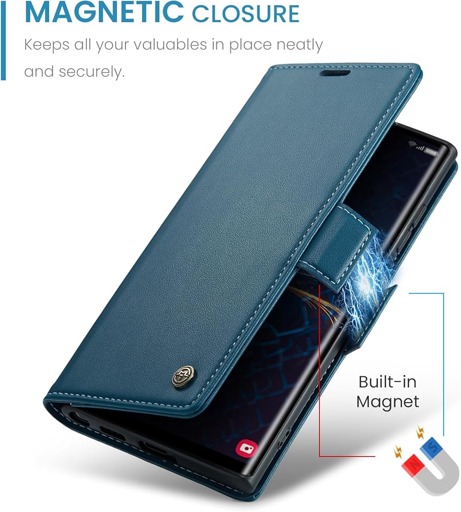 【مواد عالية الجودة】: حافظة سامسونج S24 الترا هذه مصنوعة من جلد نحيف ناعم عالي الجودة. صناعة يدوية احترافية تجعل هاتفك المحمول أكثر أمانًا ومتانة. ملمس جيد للاستخدام ويبدو أكثر أناقة.