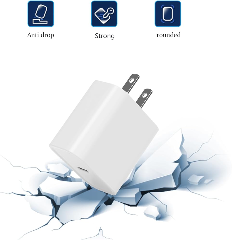 [شحن سريع لشاحن iPhone 3X]: شاحن حائط USB C بمنفذ USB-C سريع ومحول USB C وكابل USB c بطول 6 أقدام إلى كابل Lightning، والذي يمكنه شحن جهازك أسرع بما يصل إلى 3 مرات من الشاحن الأصلي بقدرة 5 وات