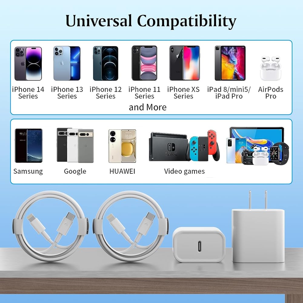 [توافق عالمي]: استخدم كابل Firewire الرسمي لكابل iPhone السريع مع شاحن حائط USB C للوصول إلى الشحن السريع لهاتف iPhone 14/iPhone 14 Max/iPhone 14 Pro/ iPhone13/ 13 Pro/ 13 Pro Max/ 13 mini، iPhone 12/ 12 Mini/ 12 Pro/ 12 Pro Max/ SE 2020/ 11/ 11 Pro/ 11 Pro Max/ XS/ XS Max/ XR/ X، 8/ 8 Plus، iPad، iPad Pro، iPad mini، iPad Air، يشحن أيضًا iPhone 7 6 Plus وiPhone 5 5c 5s SE Airpod بسرعة الشحن الأصلية