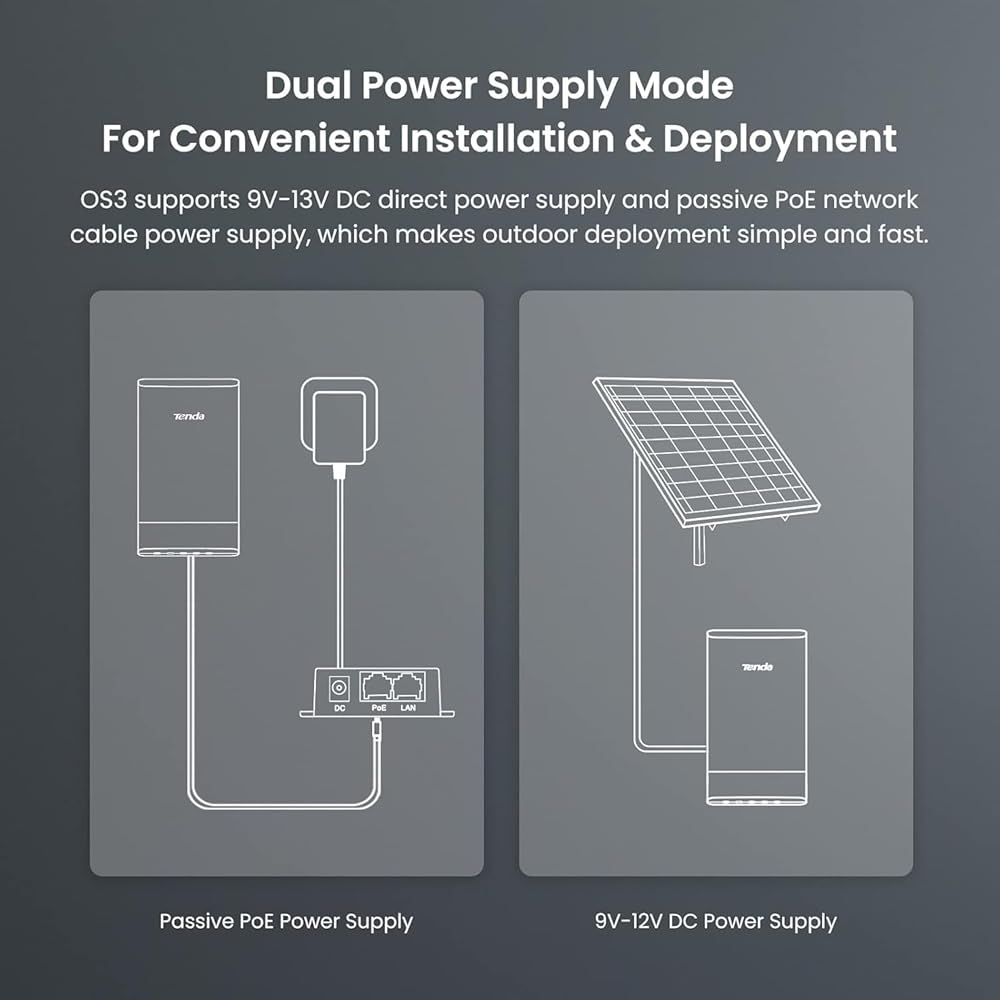 • ✅𝗟𝗼𝗻𝗴 𝗥𝗮𝗻𝗴𝗲 𝗧𝗿𝗮𝗻𝘀𝗺𝗶𝘀𝘀𝗶𝗼𝗻 𝗥𝗮𝗻𝗴𝗲: OS3 utilizes an internal power amplifier and a 12dBi directional antenna, ensuring efficient signal reception and stability over distances up to 5km for wireless networks.