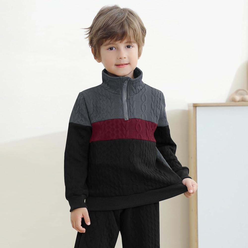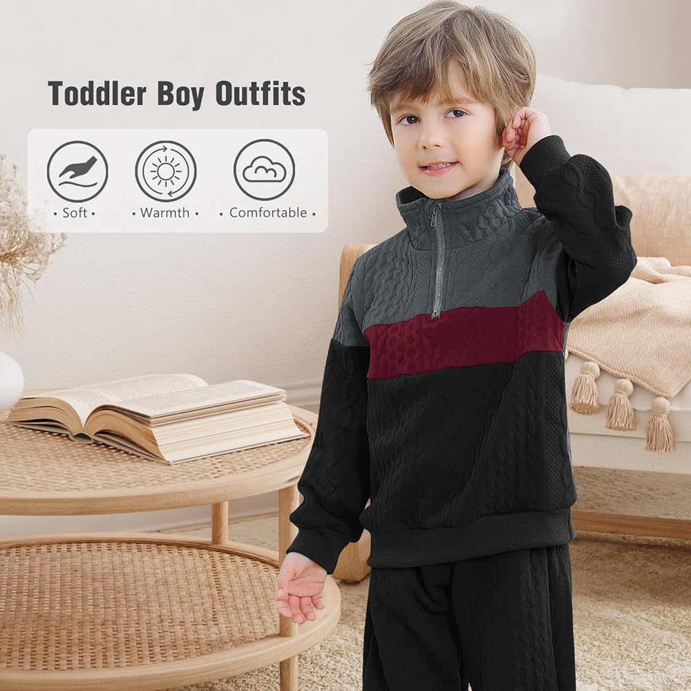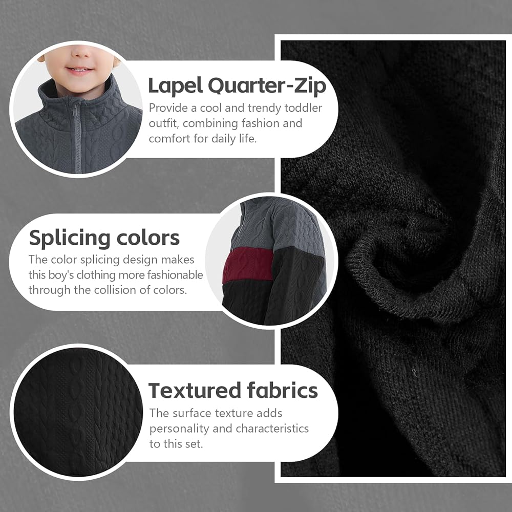 ملابس أنيقة للأطفال الصغار للأولاد: تتميز ملابس الخريف للأطفال الصغار هذه بلون ثابت ورقبة دائرية وتصميم بلوفر مع سحاب ربع مريح يوفر ملاءمة مريحة يسهل ارتداؤها وخلعها، وهو زي عملي للخريف