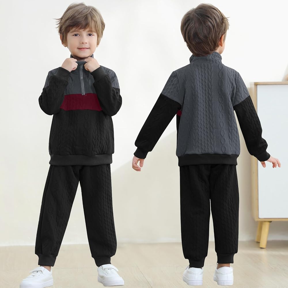 مثالي للخريف والشتاء: هذا الزي ذو السُمك المتوسط للأطفال الصغار يحافظ على دفء طفلك الصغير خلال الأشهر الباردة. تشتمل ملابس الأطفال الصغار المريحة على بلوفر وسروال، مما يجعل هذه البدلة الرياضية للأولاد الصغار مناسبة للخريف والشتاء