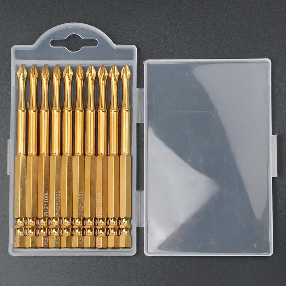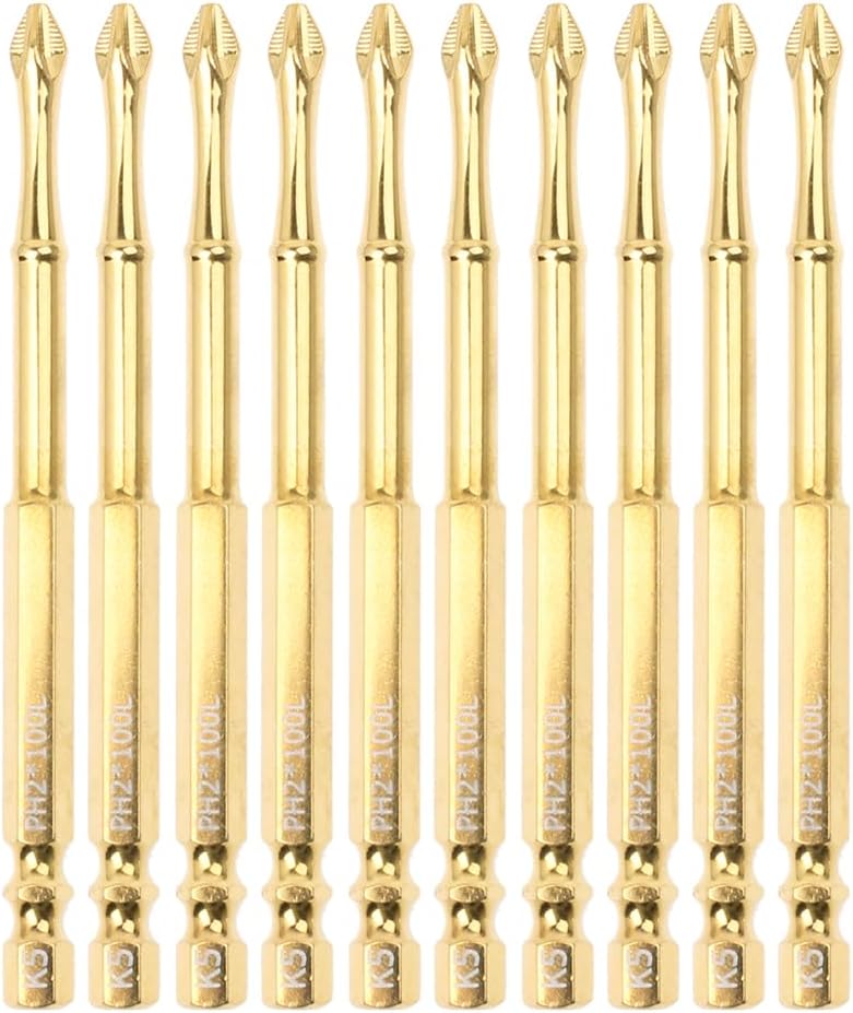 Standard Sizes--These 10 packs of 2 Philips Bits, 3 inch long, fit screws from #5 to #9, metric machine screw sizes M3.5, M4, M5, and SAE machine screw sizes #5 to #10. 1/4" hex handle,Double slot design, compatible with most electric drills, suitable for many home work and industrial applications.