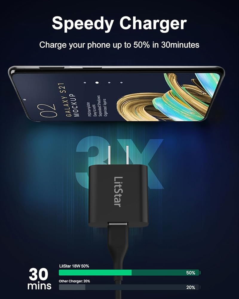 مواصفات محول الشاحن: 15 وات بحد أقصى؛ الشحن السريع 3.0 (QC3.0)؛ الإدخال: 100 ~ 240 فولت، 50-60 هرتز؛ الإخراج: 5 فولت 3 أمبير؛ كابل طويل 6 قدم