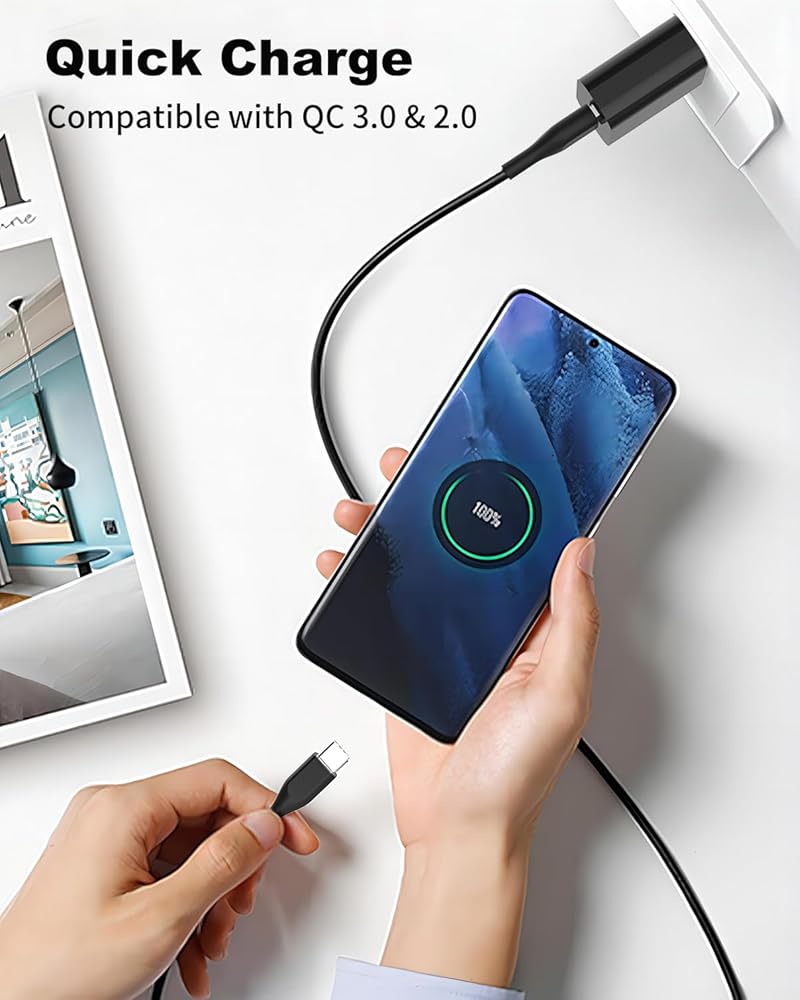شاحن من النوع C متوافق مع Samsung Galaxy Tab A8 10.5 بوصة، Tab A7 10.4 بوصة، Tab A7 Lite 8.7 بوصة، Tab S8 11 بوصة، Tab S8+ 12.4 بوصة، Tab S7 FE 12.4 بوصة، Tab S7+ 12.4 بوصة، Tab S7 11.0 بوصة، Tab Pro 12.2 بوصة (2019)، Tab A 10.5 بوصة (2018)، 10.1 بوصة (2019)، 8.0 بوصة (2017)، 8.4 بوصة (2020)، Tab S3 9.7 بوصة (2017)، S4 10.5 بوصة (2018)، S5e ، S6، Tab Active Pro(2019)، Tab Advanced 2، Tab Active 2 Tablet يناسب أيضًا هاتف Galaxy S10 S9 S8 Plus