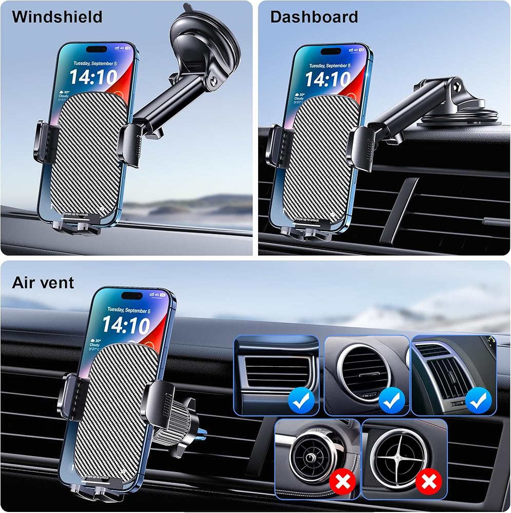 Broad Applicability: The ultra-wide adjustable arm design will make the cell phone car mount suitable for all mobile phones (4.0-7.2 inches), thin cases and other devices (width between 2.55-4.11 inches), such as GPS devices