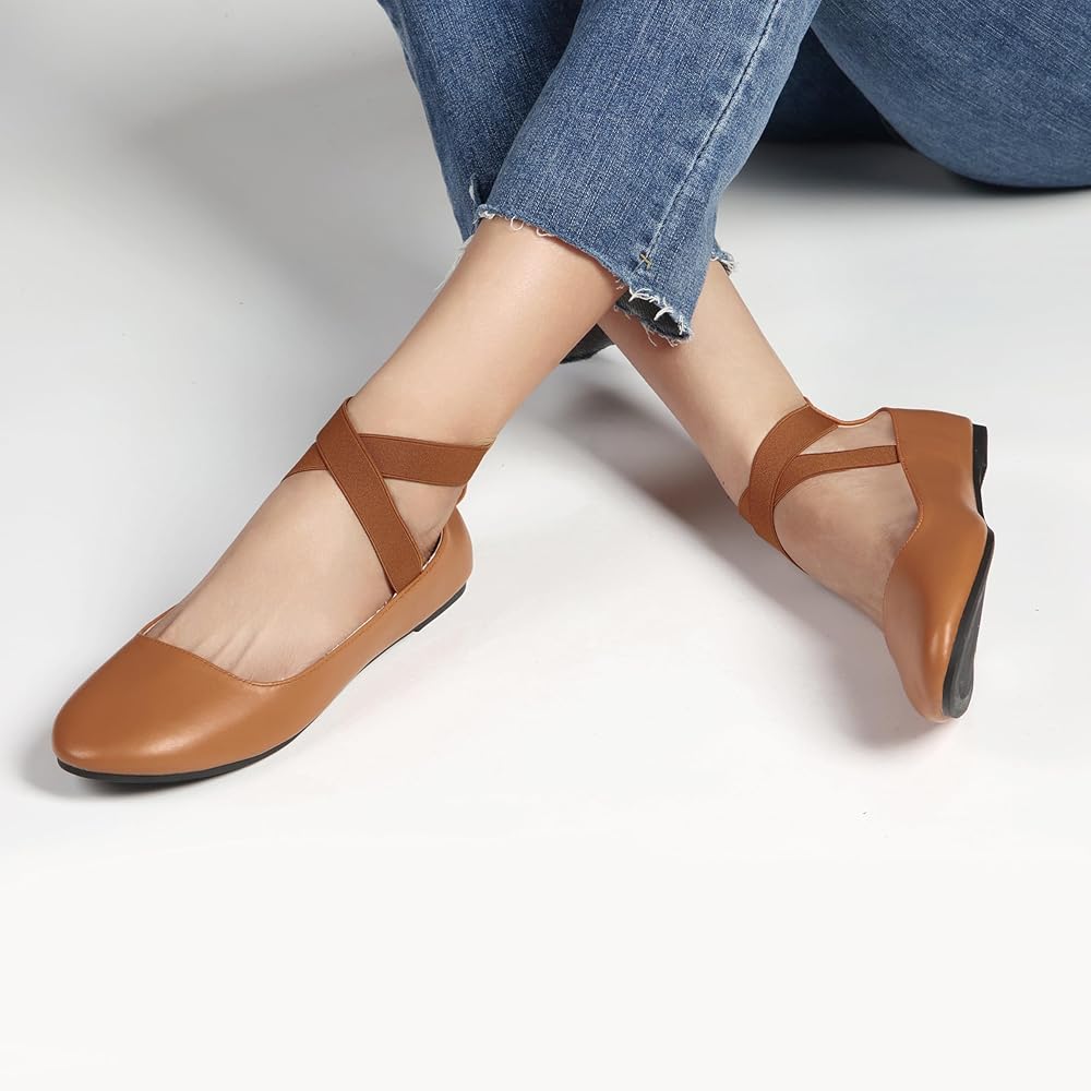 Step out in style and comfort with these Women's Comfortable Fashion Flats, the perfect blend of elegance and practicality for every occasion. These versatile shoes are designed with an elastic ankle strap, ensuring a secure and comfortable fit that conforms to the shape of your feet, making them ideal for all-day wear. Whether you're dressing up for a special event, heading to the office, or enjoying a casual day out, these flats are your go-to choice.Featuring a round toe design, these ballet flats provide ample room for your toes, reducing pressure and discomfort for a more relaxed fit. The ultra-soft lining gently cushions your feet, while the cushioned insole offers superior support, allowing you to stay on your feet comfortably from morning to night. The ultra-flexible rubber outsole ensures a non-slip grip, providing stability and confidence with every step, regardless of the surface.With their dressy ballerina style, these closed-toe sandals for women are perfect as both comfortable dress shoes and casual ballet flats. Whether you're looking for shoes for women that are both dressy and comfortable or women's dress shoes that double as casual flats, these shoes offer the versatility you need.Shop with peace of mind, knowing that our satisfaction guarantee means hassle-free returns if you're not completely satisfied. Choose these women's flats for a perfect combination of style, comfort, and reliability. Your feet will thank you!