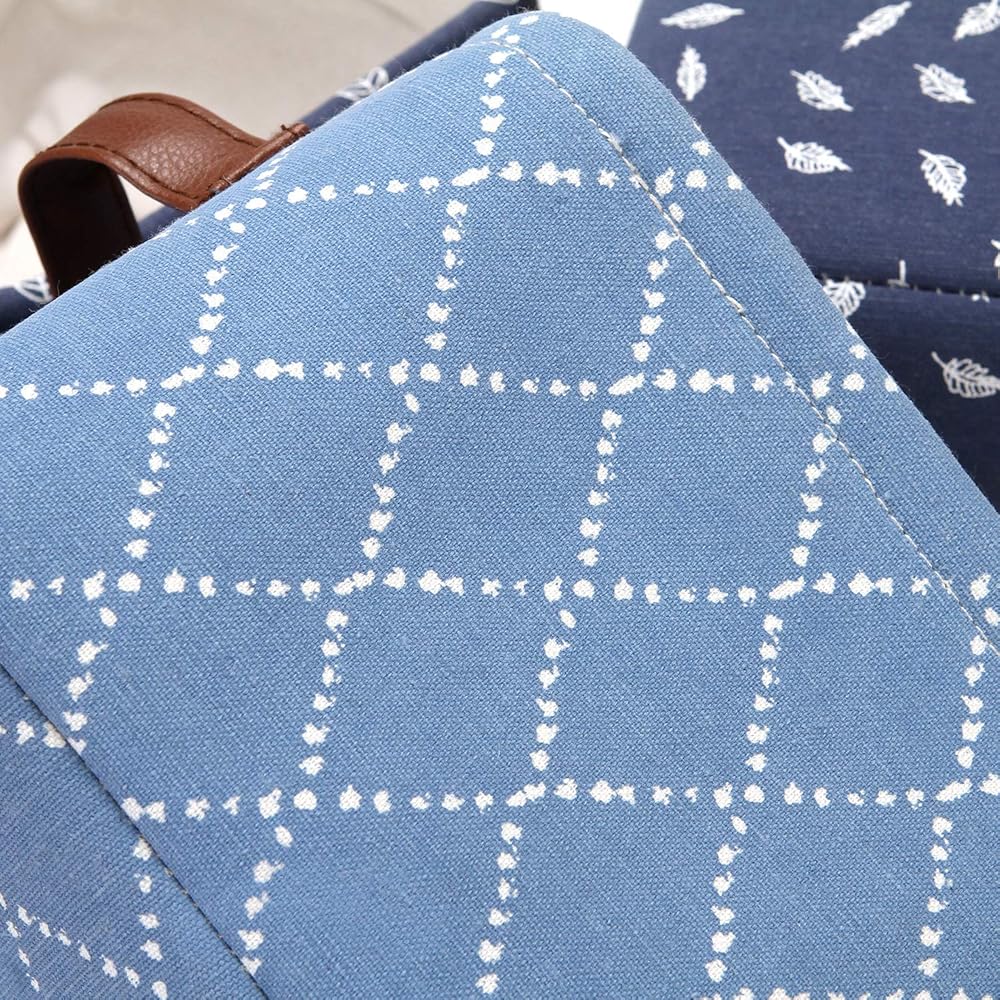 The fabric basket features navy blue and grey to offer stunning, clean, stylish aesthetics for seamless coordinating with surrounding decor, and it can be wiped clean with a damp cloth for easy cleaning as needed.