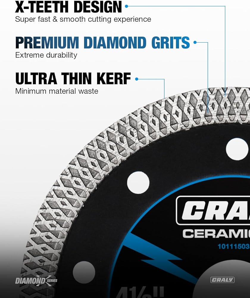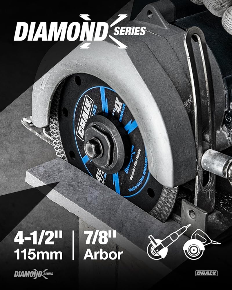شفرة منشار ماسية رفيعة للغاية مقاس 4-1/2 بوصة من CRALY لطاحونة الزوايا، 7/8 بوصة، عجلة قطع ماسية، قطع رطب/جاف، للسيراميك والبلاط والرخام والجرانيت والطوب والبورسلين