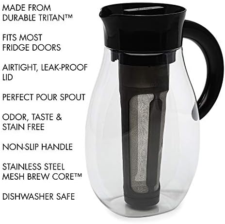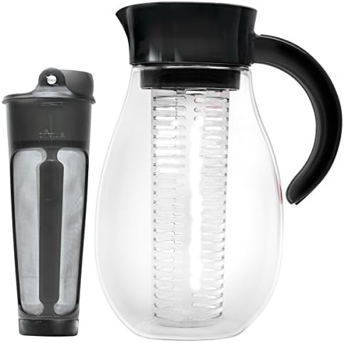 ماكينة صنع القهوة المثلجة ذات النكهة الباردة من بريمولا مع لب الفاكهة للمياه المغمورة والشاي والمزيد، هيكل بلاستيكي متين مقاوم للكسر، مانع للتسرب، 2.7 لتر، أسود