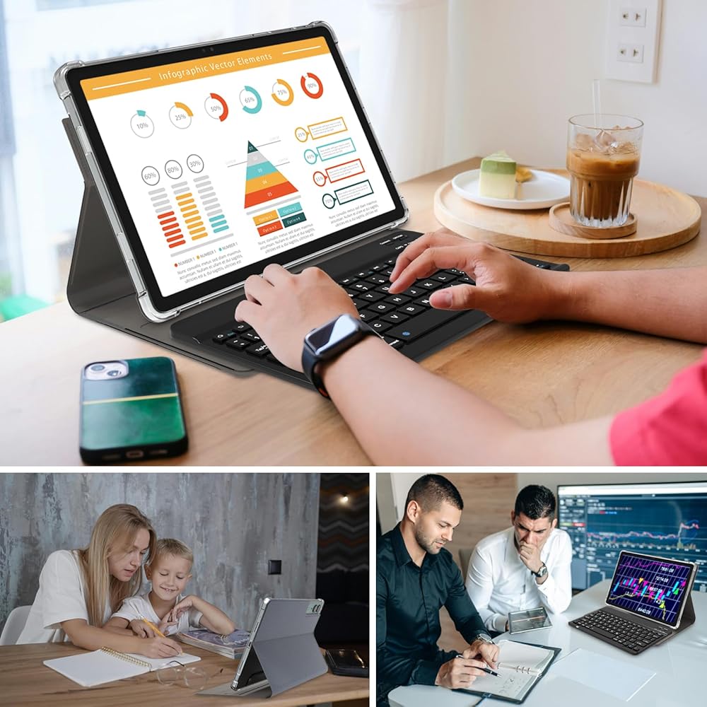 إمكانية النقل 2 في 1 متعددة الاستخدامات: قم بالتبديل بسلاسة بين وضعي الكمبيوتر اللوحي والكمبيوتر المحمول المدمج عن طريق توصيل لوحة مفاتيح لاسلكية عبر البلوتوث. استمتع بالراحة القصوى في المنزل أو المدرسة أو المكتب مع هذا الجهاز اللوحي مقاس 11 بوصة