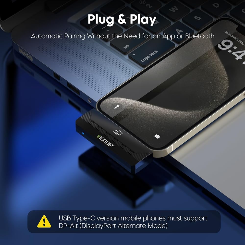 ملحوظة: يتوافق HDMI اللاسلكي هذا مع الهواتف أو أجهزة الكمبيوتر المحمولة التي تدعم النوع C مع وظيفة DP-Alt.
